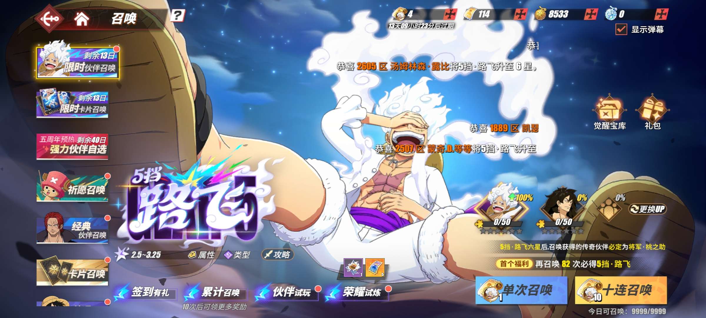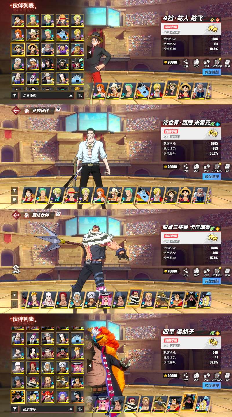 竞技场44传奇5强者8k金果107抽卡二,四皇黑胡子,新世界鹰眼,青年雷利,新世界鹰眼等官服版本苹果