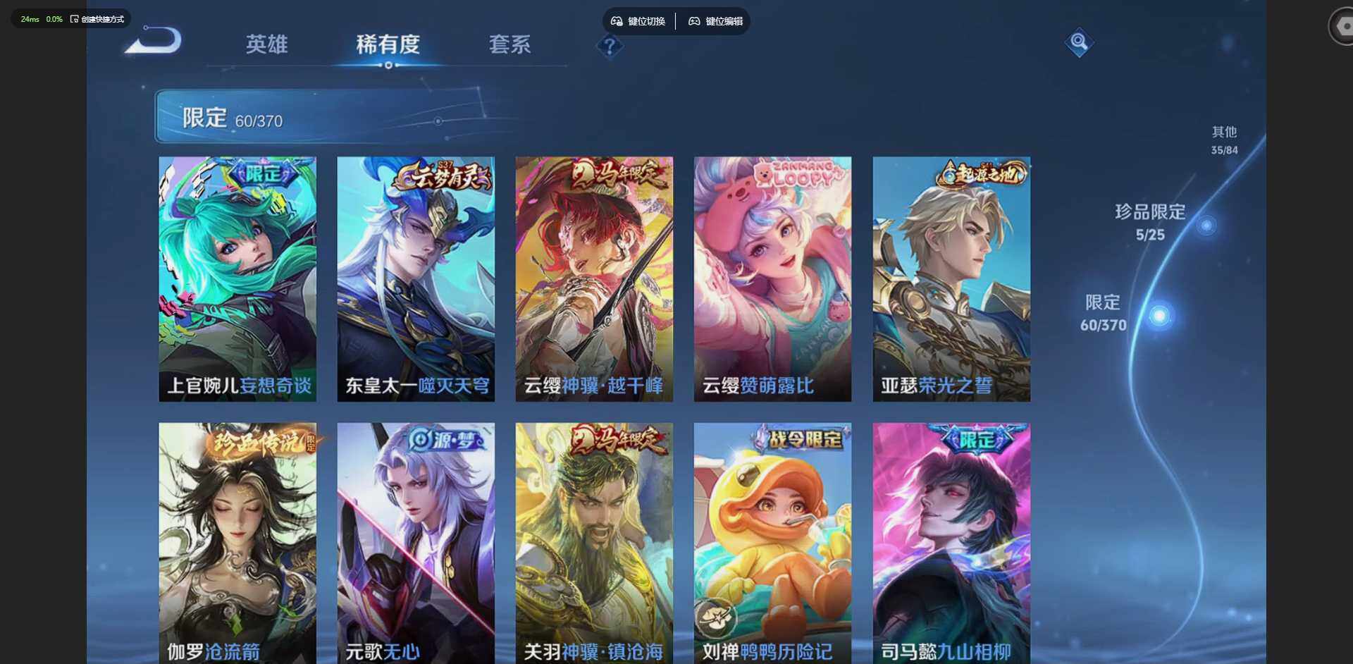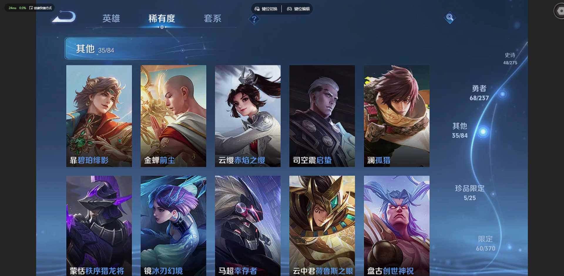 【金标暃】实名: 可修改 贵族等级: V7 英雄数: 127 皮肤数: 182