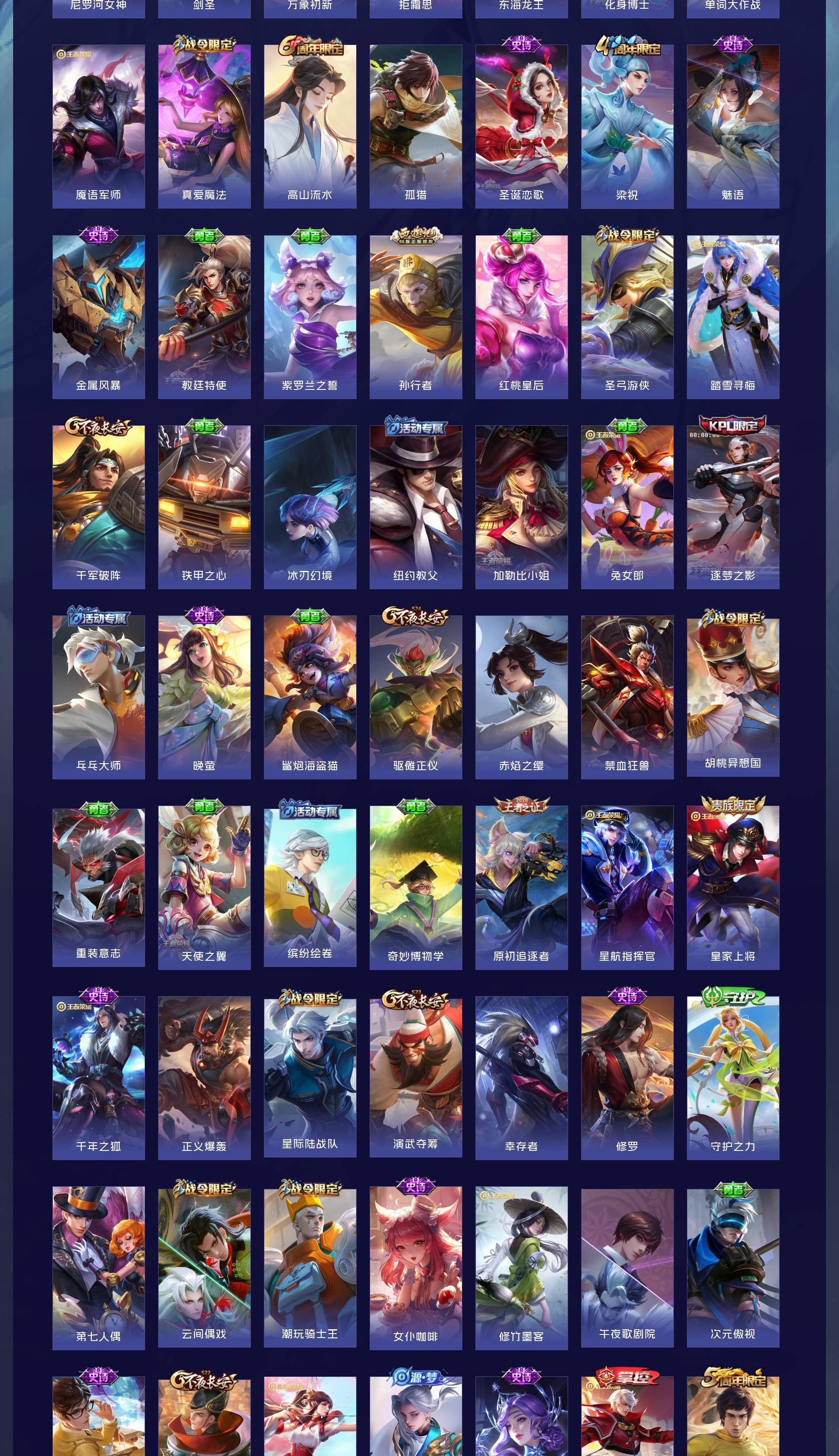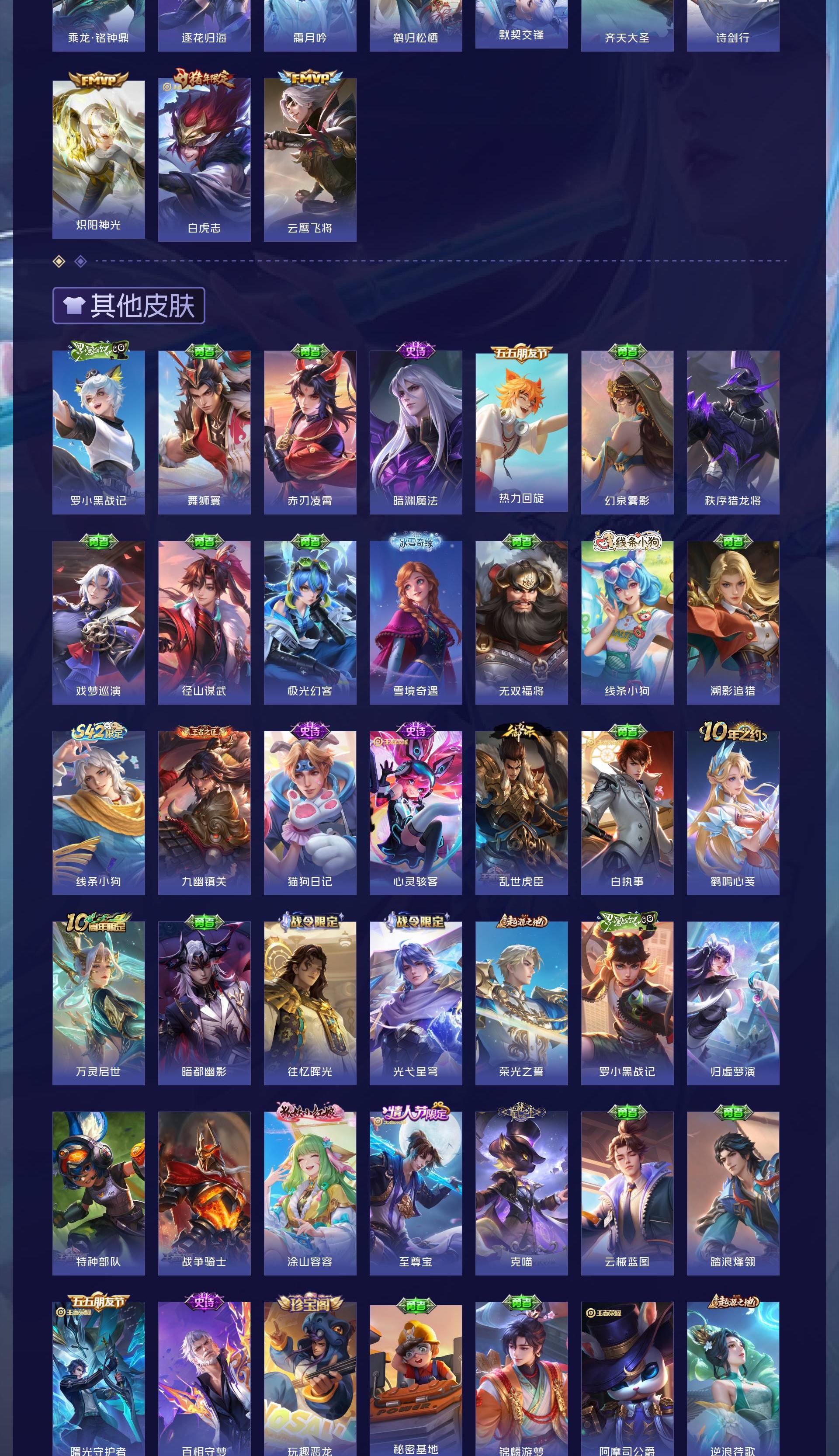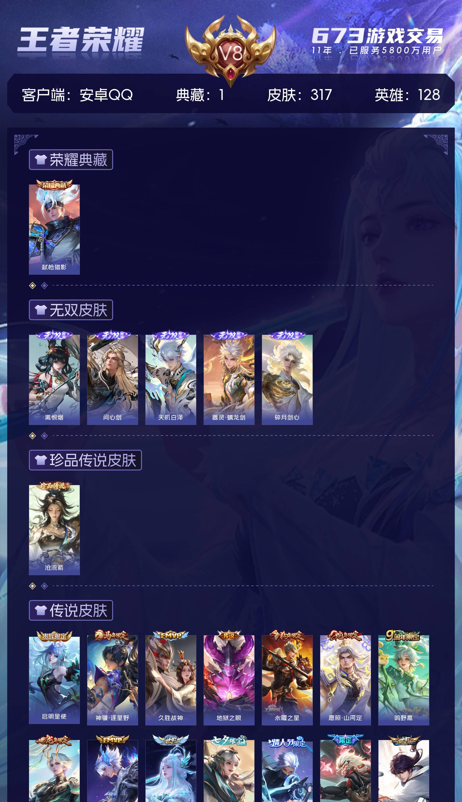 V8 皮肤317 英雄128 荣耀王者 荣耀典藏1 无双皮肤5 珍品传说1 传说17 其他皮肤299