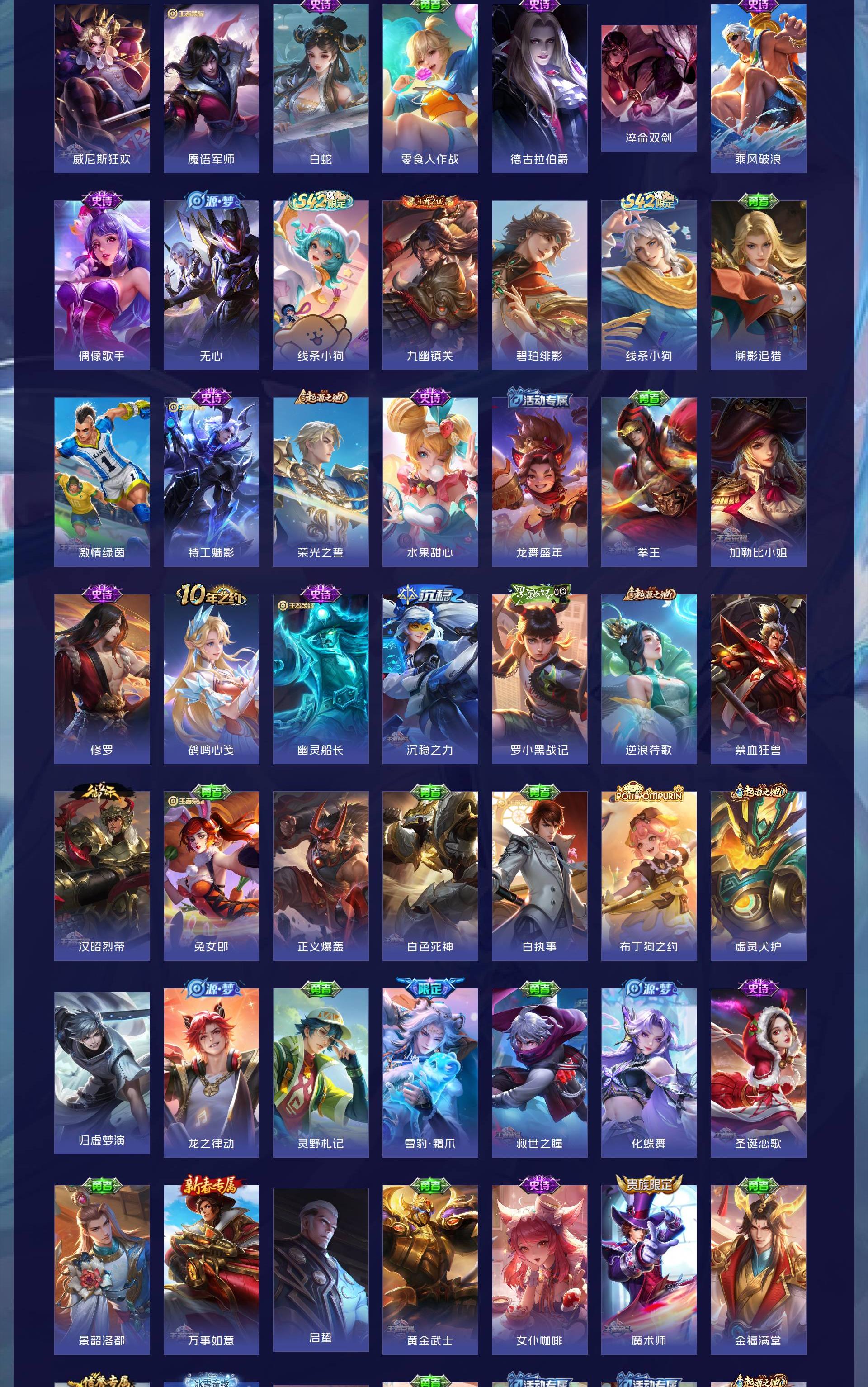 V7 皮肤93 英雄111 荣耀王者 无双皮肤1 珍品传说1 传说11 其他皮肤87