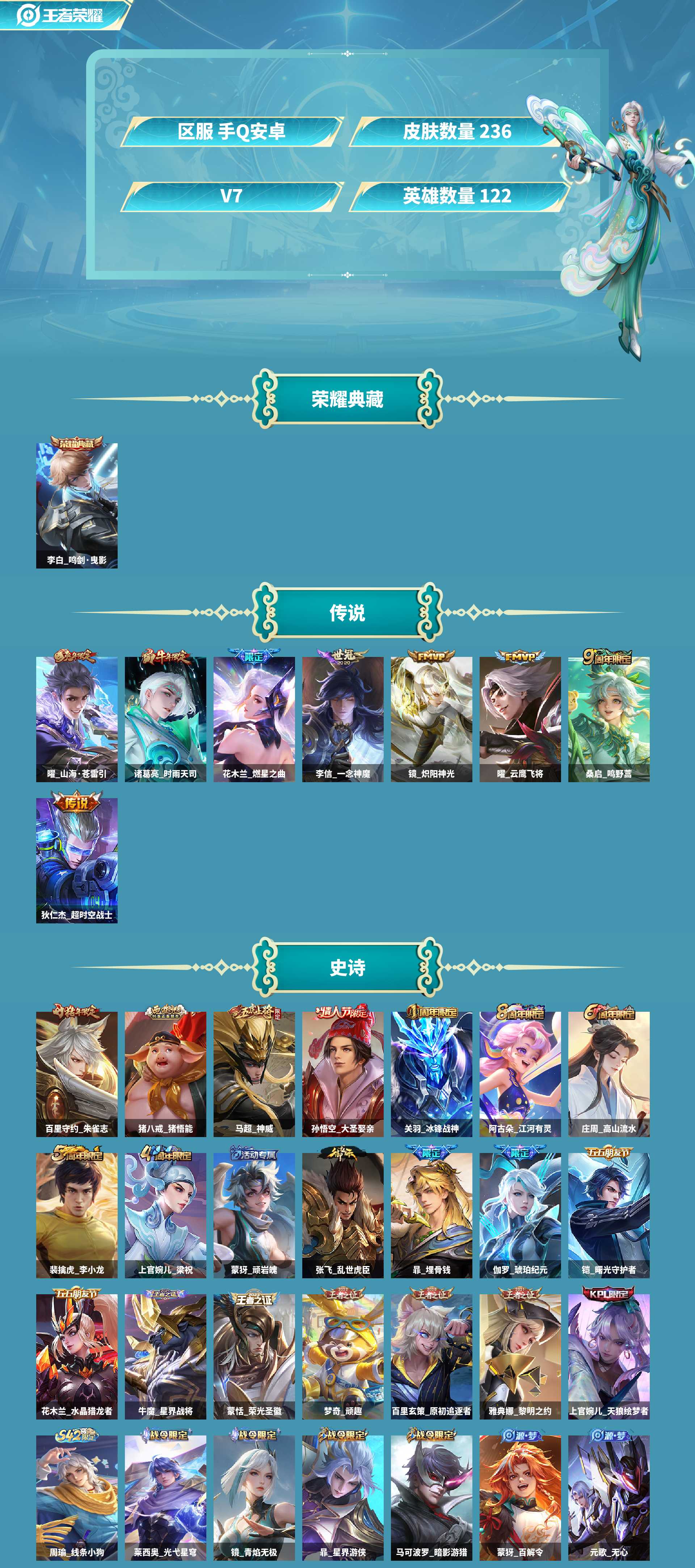 万战金标花木兰皮肤数量236印记总数20V7尊贵铂金暂时不可