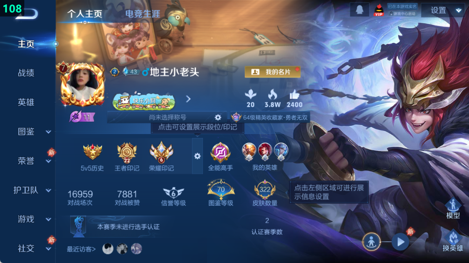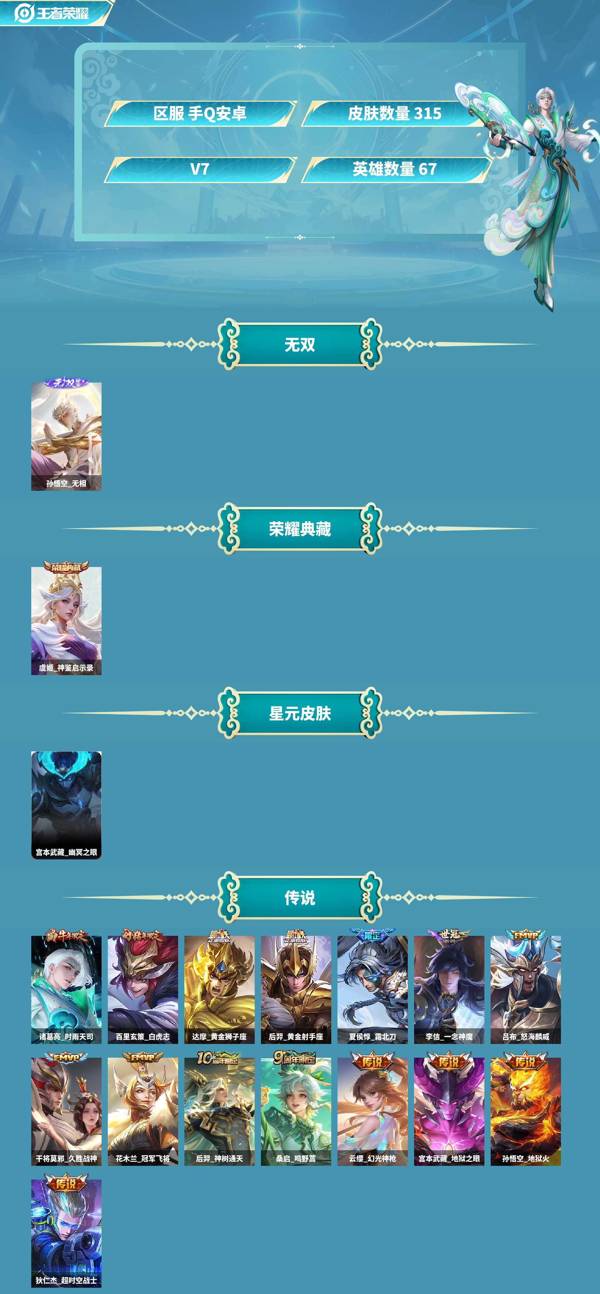 皮肤数量322印记总数28V7至尊星耀可修改账号类型3无双1