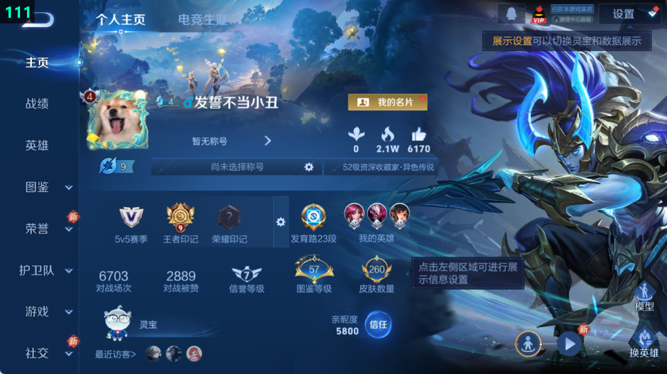 皮肤数量260印记总数9V7永恒钻石可修改账号类型3荣耀典藏