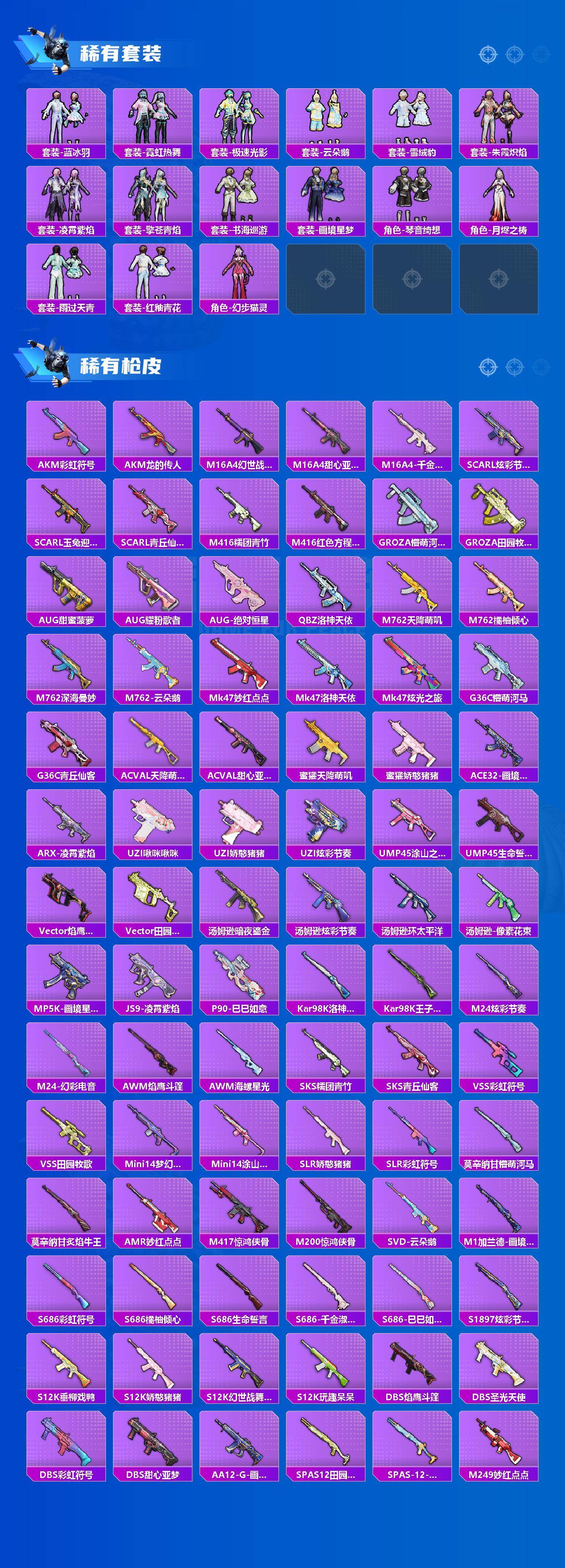 【粉色枪皮等级】:SCAR-L-时空协奏(三级),GROZA-镜光银凌(五级),AUG-星梦奇缘(三级),UMP45-萌