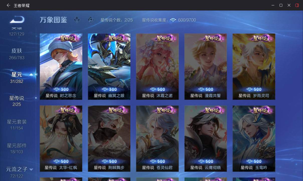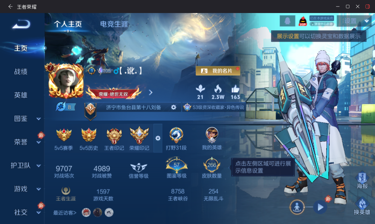 皮肤数量266印记总数14V7荣耀王者暂时不可修改账号类型2
