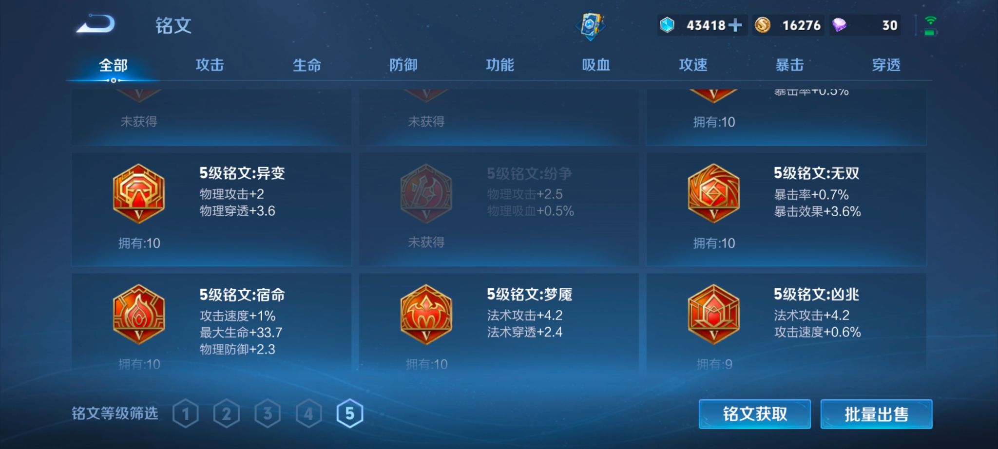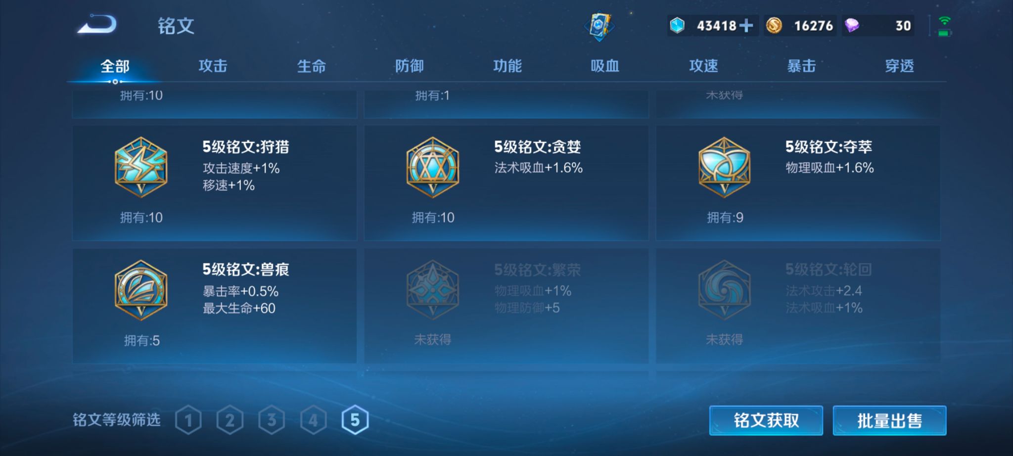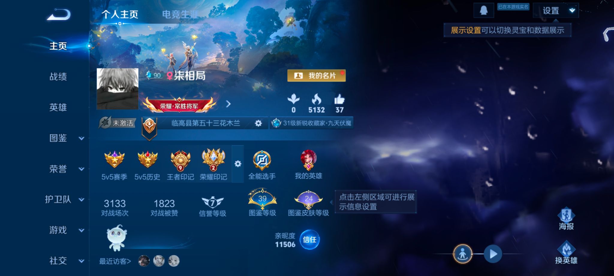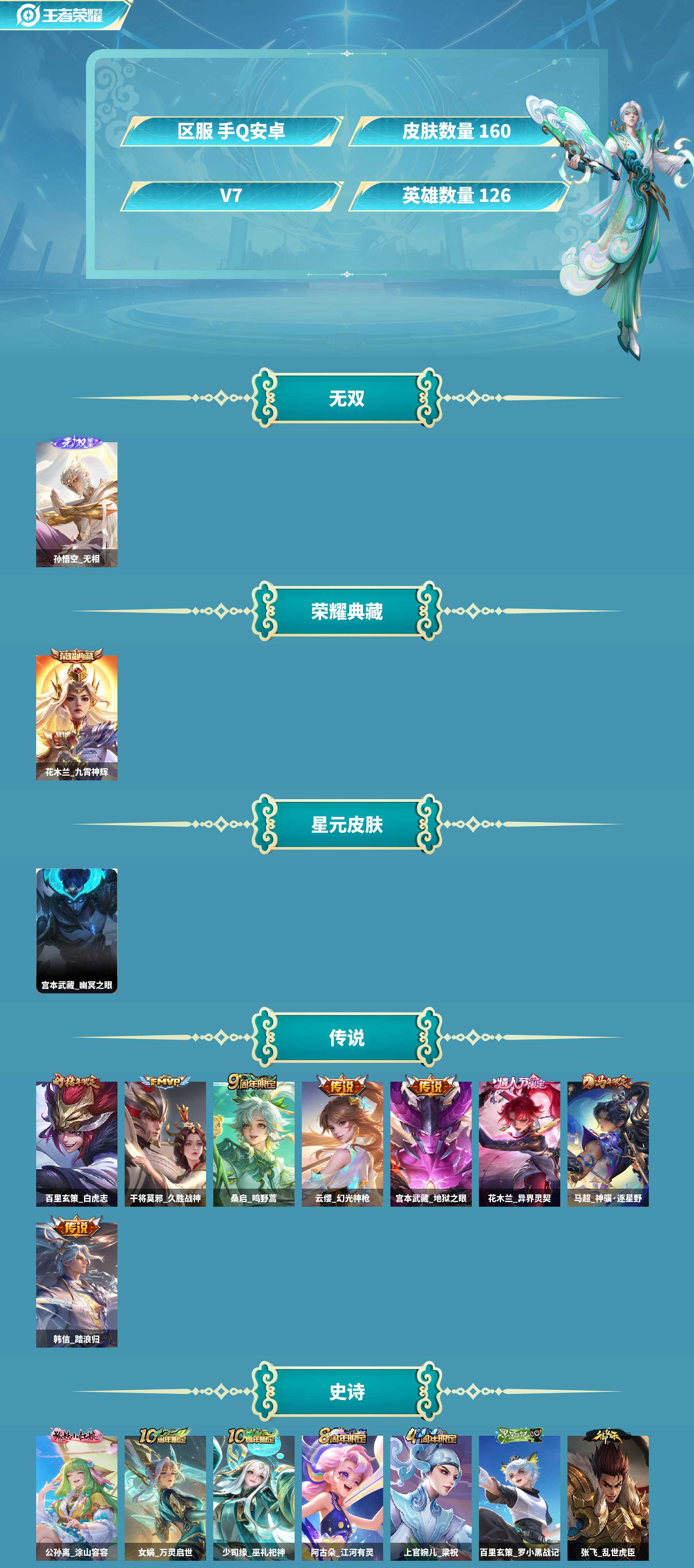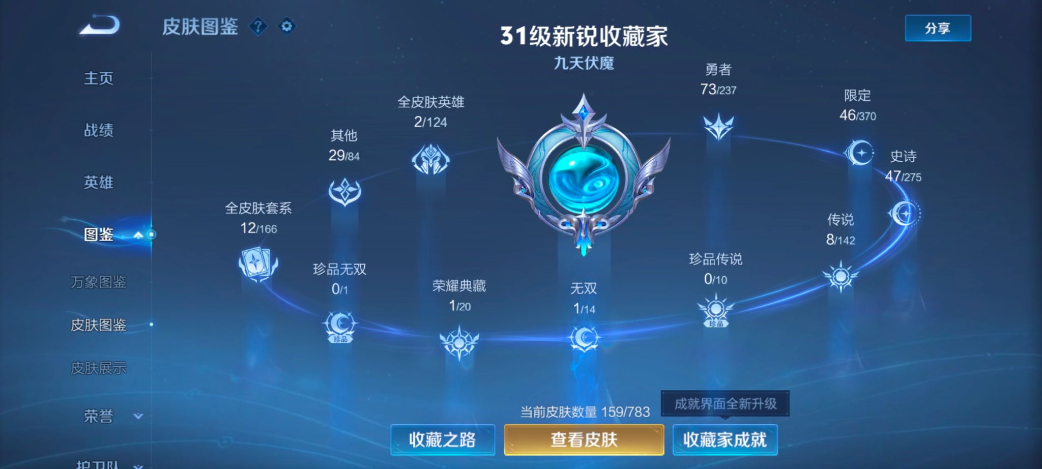 仓库有一颗荣耀水晶未换。皮肤数量159印记总数11V7绝世王