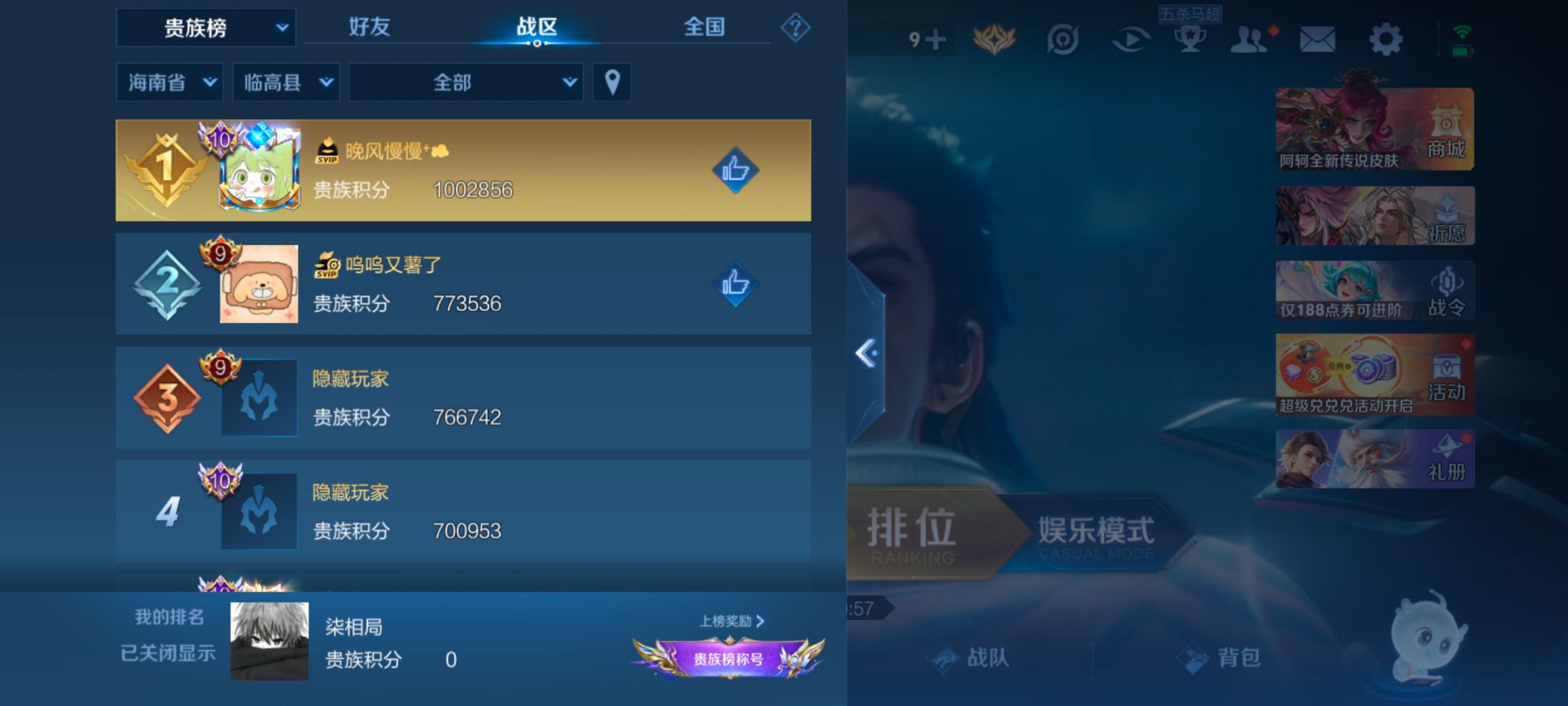 【王者荣耀】用户985*****4