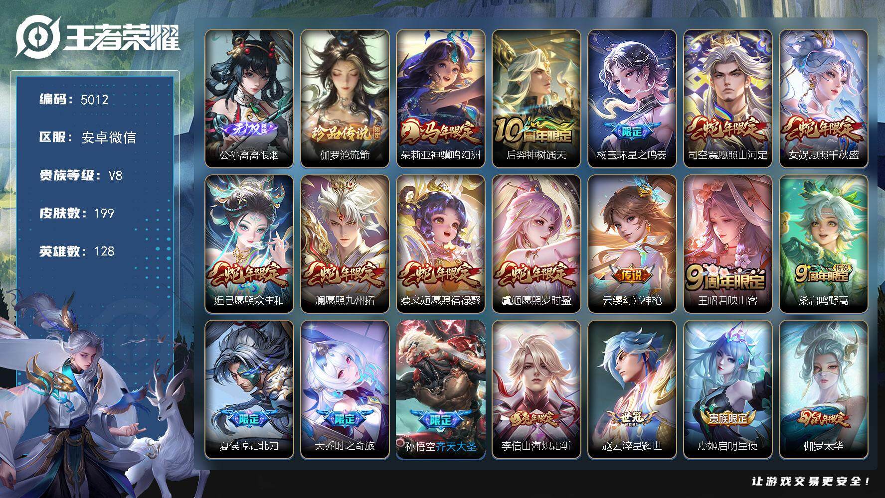 656-[17379086]安卓微信419区199皮0典藏21传说1无双1珍品传说V8 营地ID1685741496至尊星耀III【珍品传说皮肤】:沧流箭【无双皮肤】:离恨烟【优质限定皮肤】:神骥·鸣幻洲,山海·炽霜斩,至尊宝【传说皮肤】:神骥·鸣幻洲,霜北刀,神树通天,星之鸣奏,愿照·山河定,愿照·千秋盛,启明星使,愿照·福禄聚,幻光神枪,愿照·岁时盈,愿照·九州拓,愿照·众生和,鸣野蒿,时之奇旅,山海·炽霜斩,齐天大圣,映山客,太华,黄金射手座,仲夏夜之梦,淬星耀世【史诗皮肤】:末日机甲,百