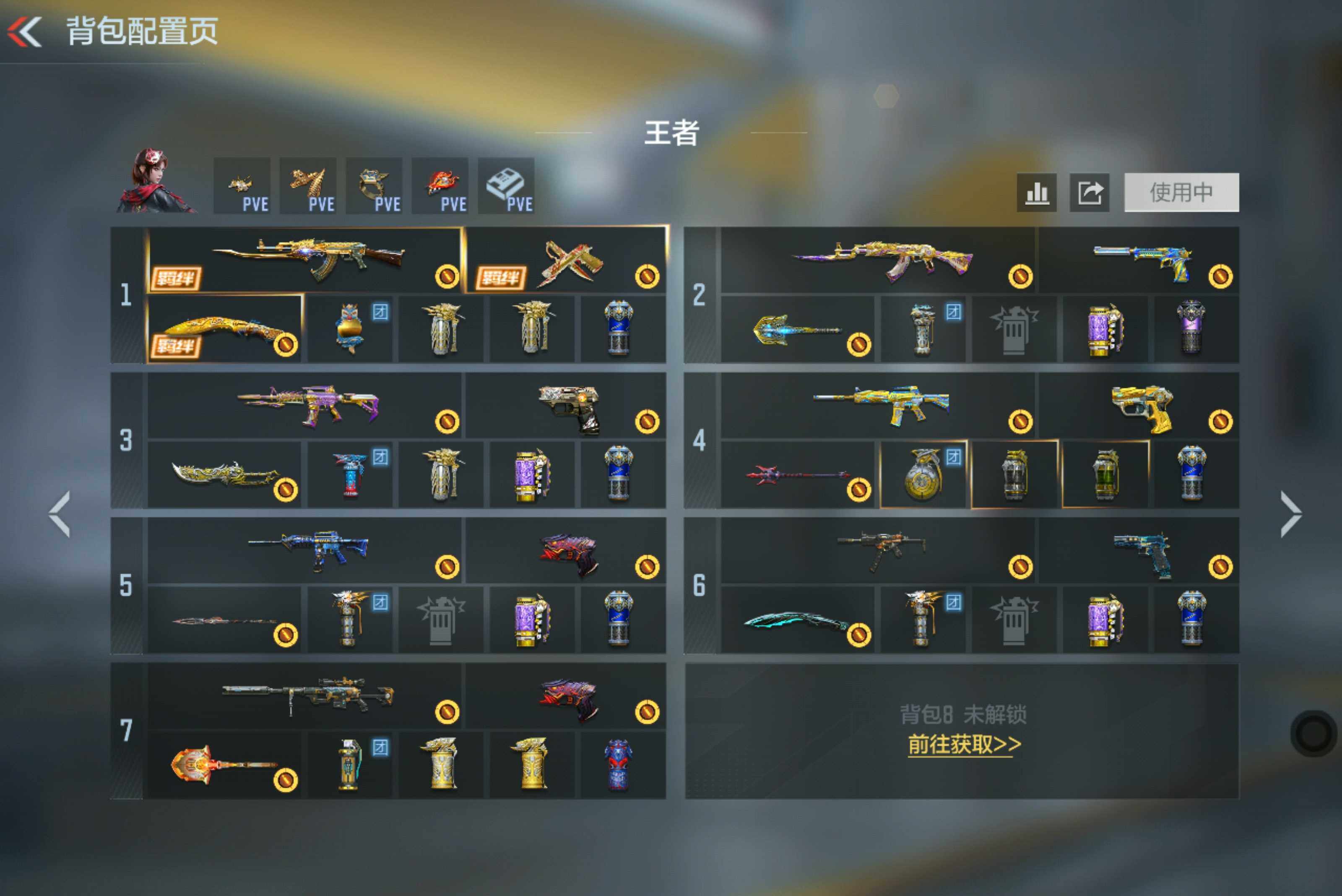 V8/34王者378英雄/王者之心/王者之影+拉丝皮/王者之戮+拉丝皮/王者之腾+冰皮/王者之尊/王者之神/王者之狱+冰皮/王者之烈*2/王者之蝶/王者之霆/王者之魂+白金血钻/王者之隐+冰皮/COP雷霆王者/王者之锋/王者之击/王者之痕/雷暴王者手雷套装/王竞手雷/王心闪光烟雾/王影烟雾/王势闪光烟雾/M4游骑兵+枪娘/AK4仲达+过载/47仁德/81光明之神/M200幻神/AWM妙才+过载/TAC慈/M200竞技荣光/VEPR12宙斯/COP星象+璀璨星辰/堕天神COP*4/4屠龙/角色/蝉