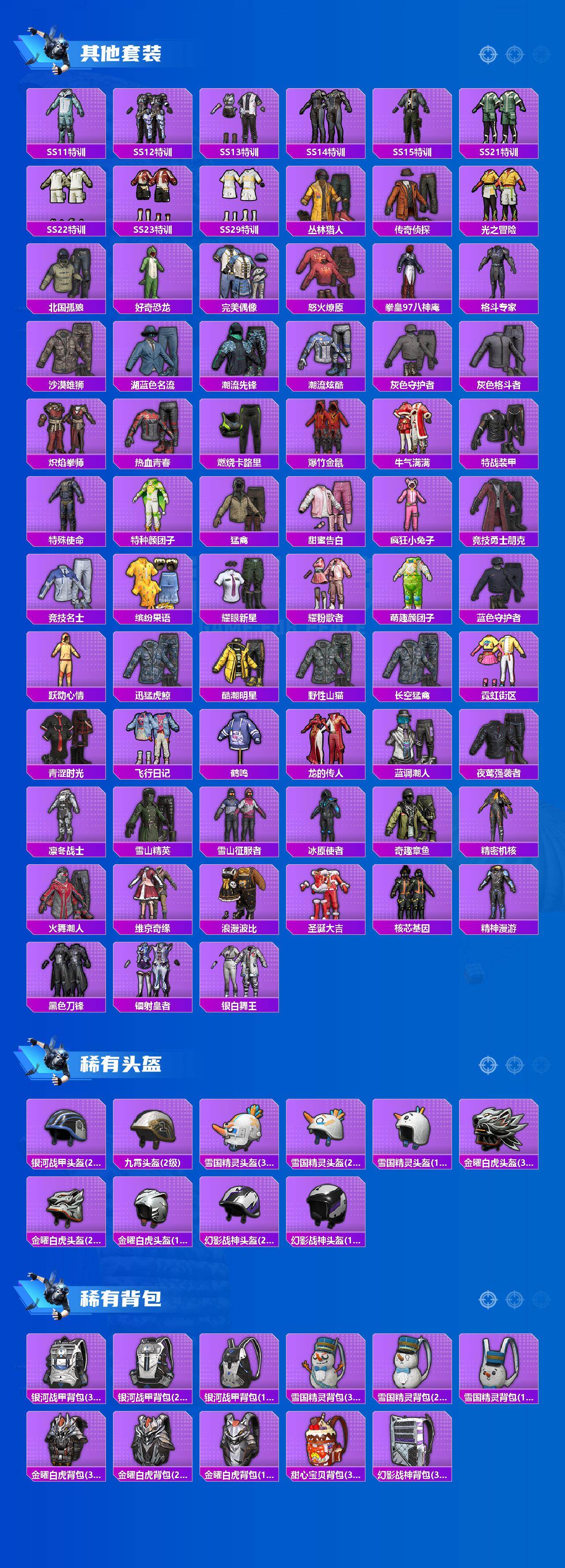 【稀有枪皮】:AKM-破晓战魂,AKM-萌趣颜团子,AKM-霓虹街区,SCAR-L-炫彩节奏,M416-夜灯,GROZA-银河战甲,GROZA-黑色刀锋,AUG-凝视深渊,AUG-幻影战神,QBZ-彩虹符号,M762-天降萌叽,M762-拳皇97,M762-牛气冲天,M762-镭射皇者,G36C-雪国精灵,AC-VAL-天降萌叽,蜜獾-天降萌叽,UZI-幻影战神,UMP45-狮舞迎春,UMP4