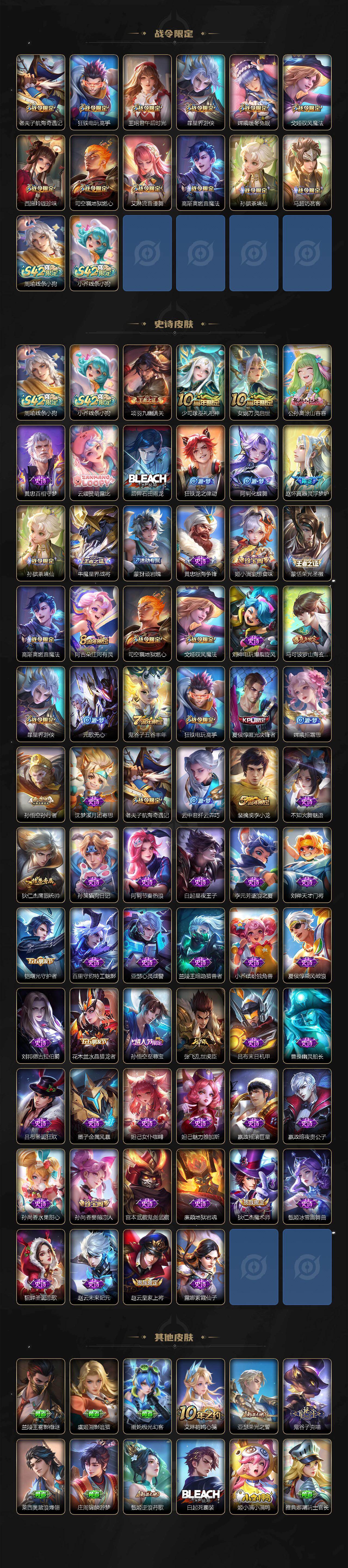 安卓Q-V7-最强王者段位-128英雄-229皮肤-1典藏皮肤-12传说-69史诗