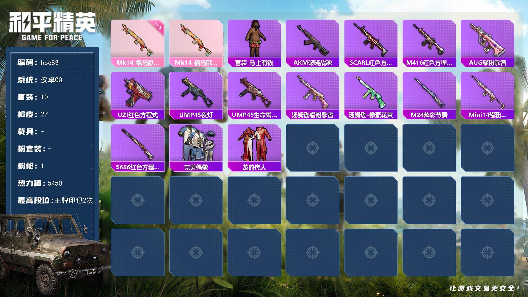 0粉装-1特效枪-0载具-0粉色飞行器