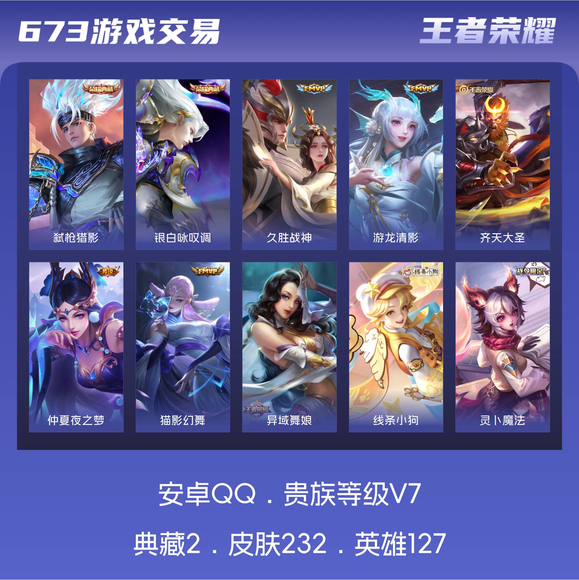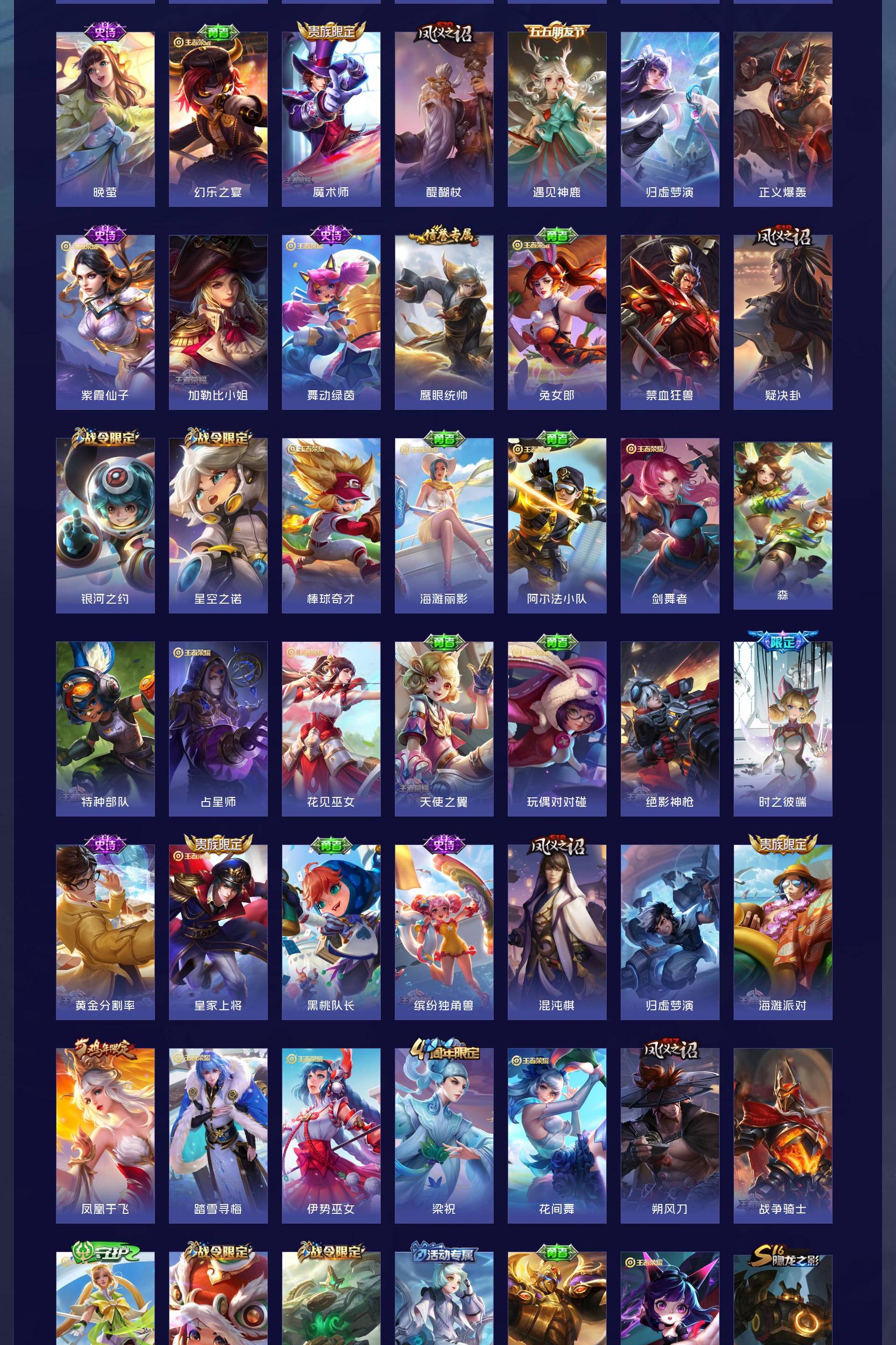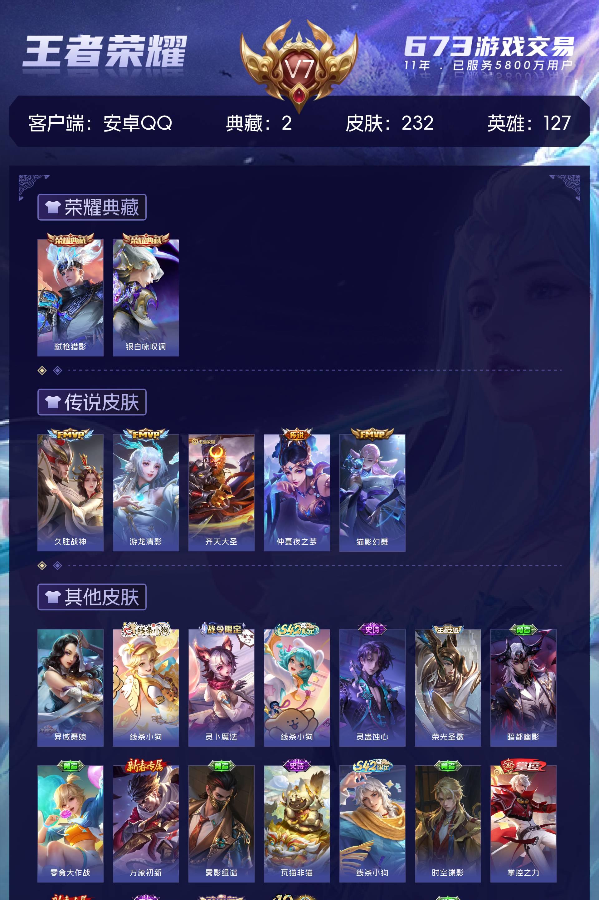 V7 皮肤232 英雄127 非凡王者 荣耀典藏2 星传说1 传说5 其他皮肤232