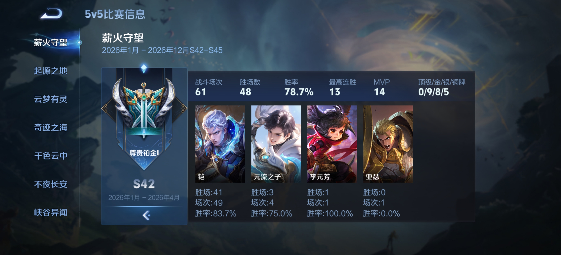 史诗皮肤开局号 有好运卡折扣 铠胜率高低场次 可冲耪
