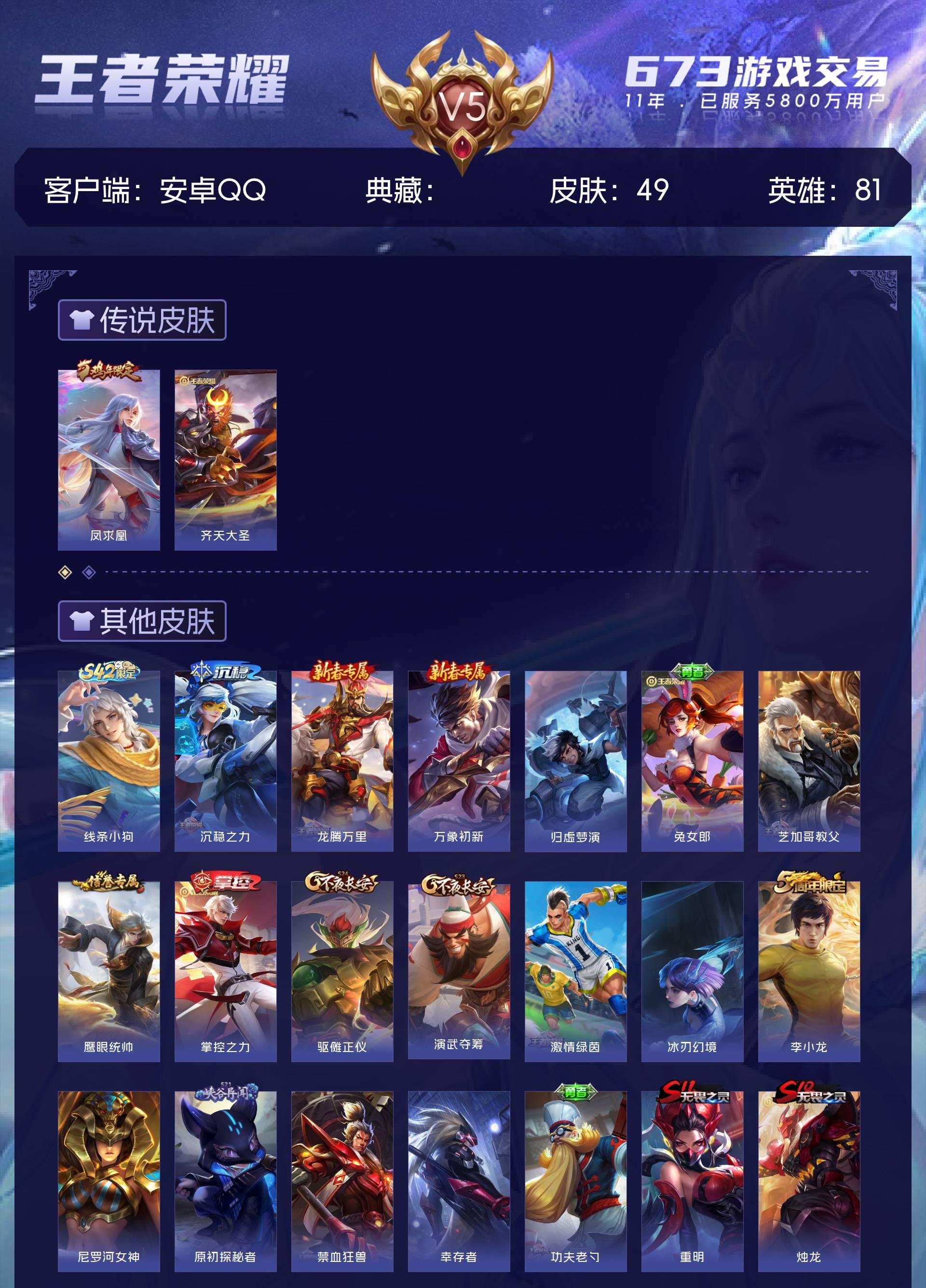 V5 皮肤49 英雄81 尊贵铂金 传说2 其他皮肤54
