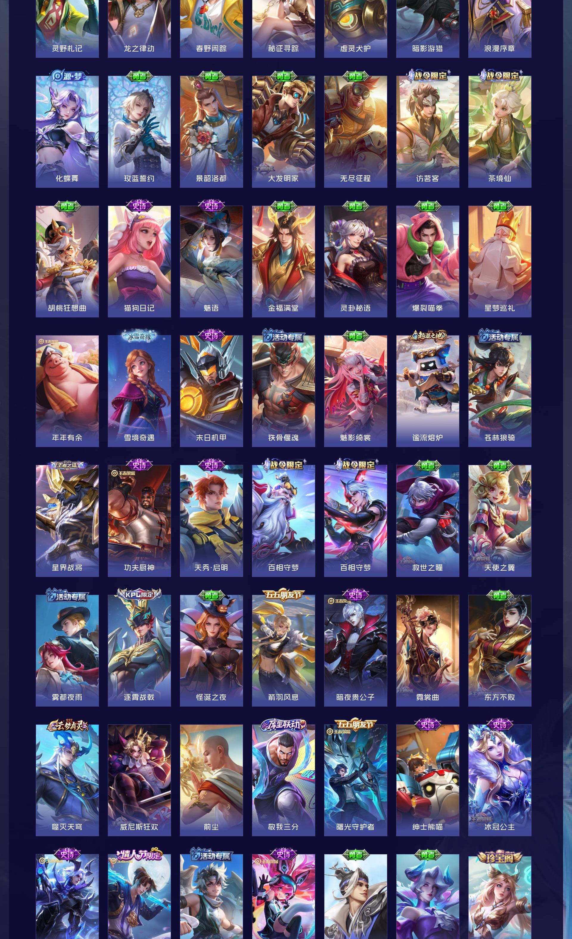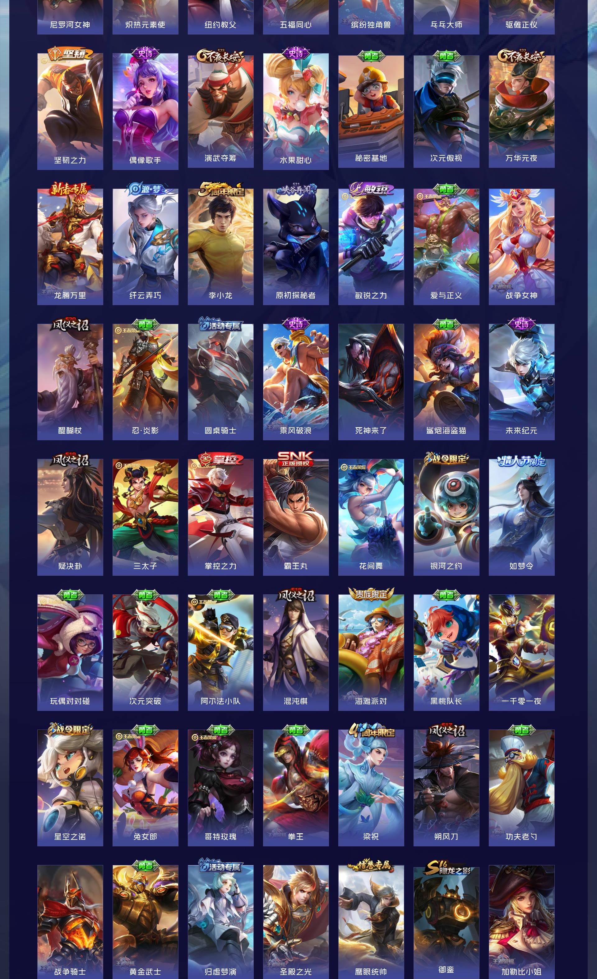 V7 皮肤407 英雄129 非凡王者 荣耀典藏4 珍品传说1 传说14 其他皮肤395