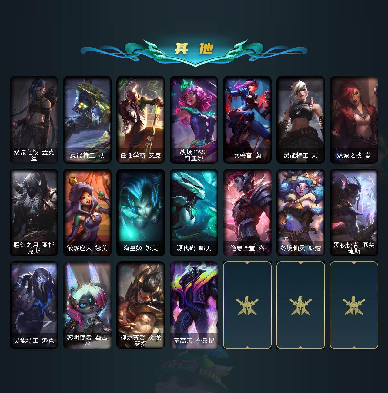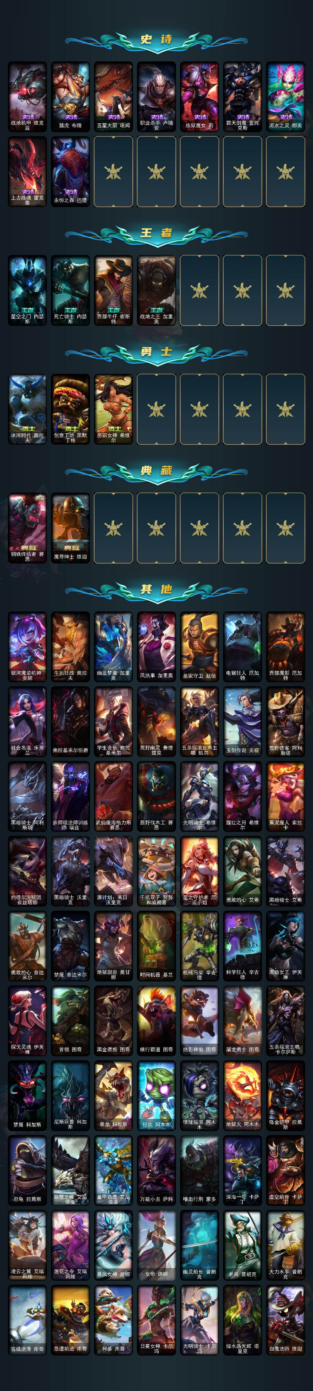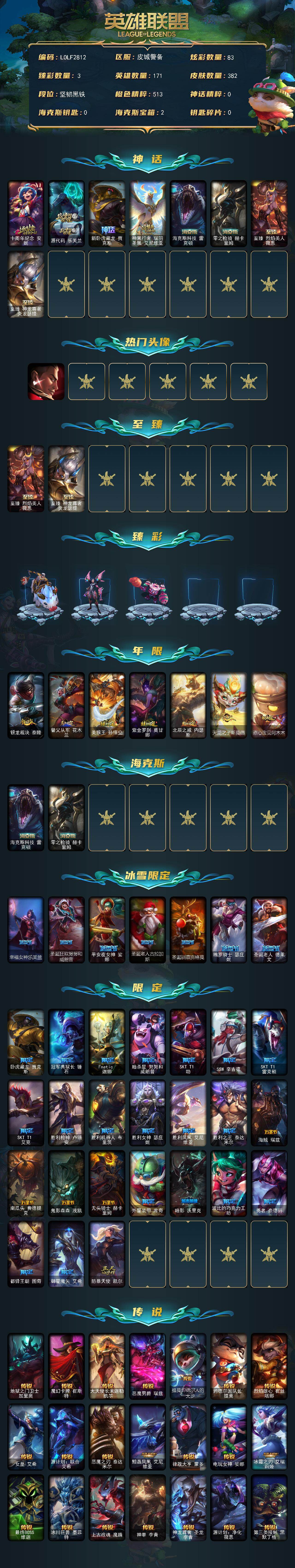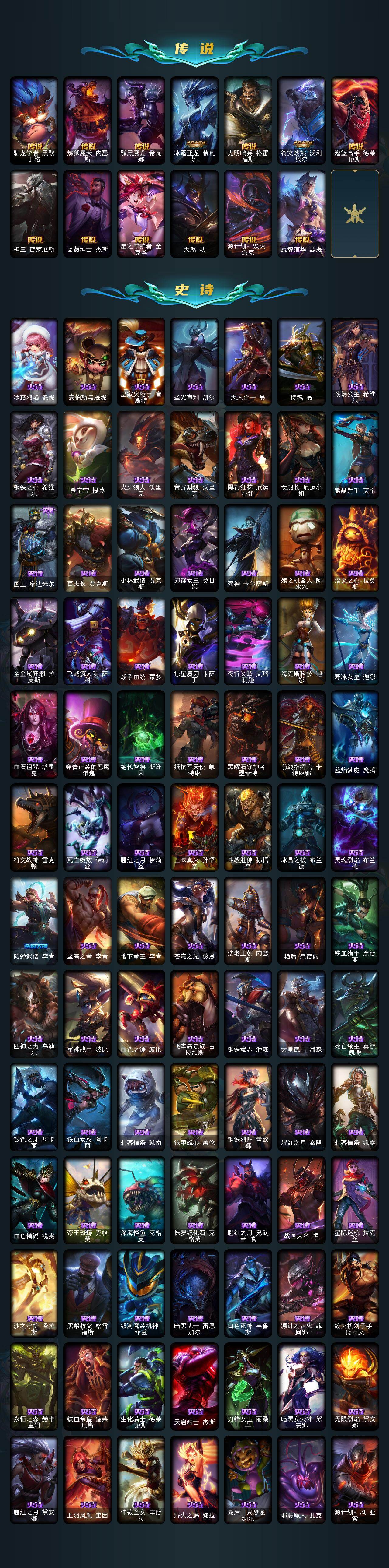 171英雄/382皮肤/8神话/38限定/3臻彩/83炫彩/