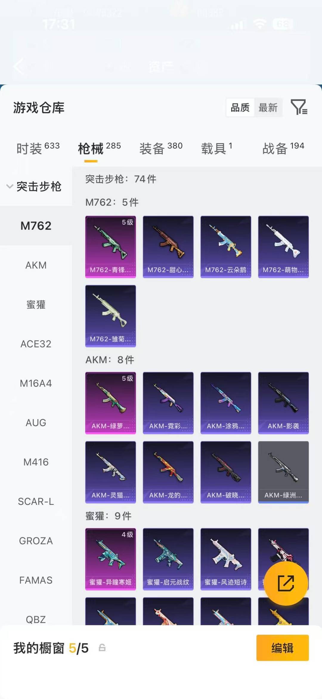 【稀有枪皮】M762-青锋波束,AKM绿萝繁花,蜜獾-异瞳寒姬,AU