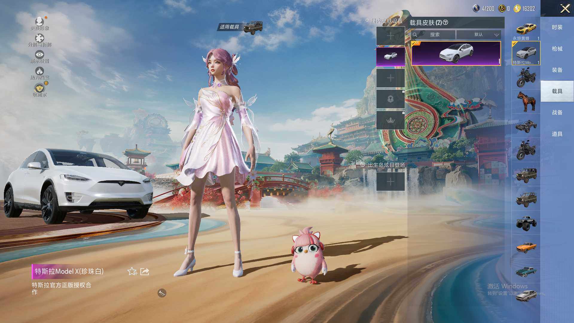 【粉色载具】:特斯拉Model X(珍珠白),永恒黄蜂