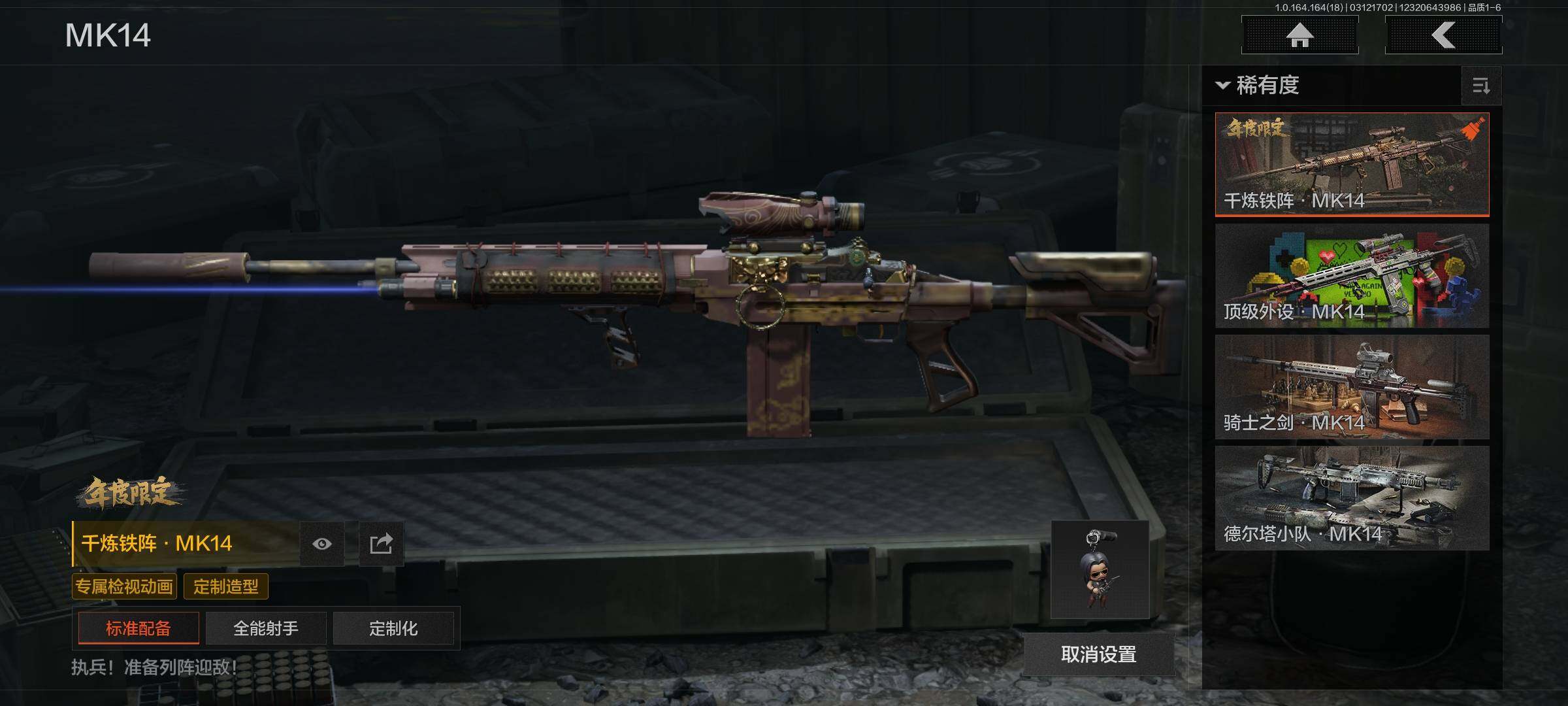 【金色枪皮】:骑士之剑VSS,千炼铁阵MK14,棱光裂变QBU191