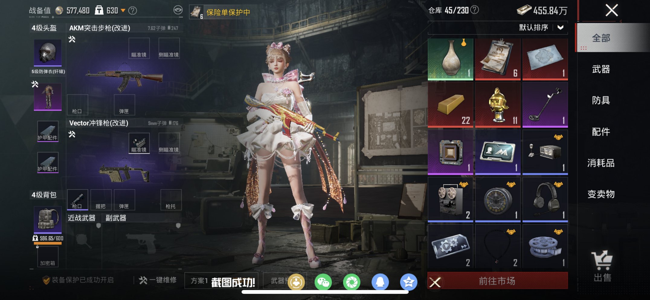 可二次实名【女号金鞋10特效枪8粉装 秒换绑不用等】 苹果Q区-62702热力值-128套装-209枪皮 【2稀有】 派对舞王(金靴子) 派对舞王【8粉装】 小可学妹 创世·救赎 雪月幻音 角色-异瞳寒姬 星穹咏叹调 角色-羊梦糖心 角色-守护天翼 角色-千金淑猫【10特效枪】 AKS-74U-森灵之息(5级) Mk14-福马献瑞(5级) UMP45-萌骑冒险(3级) P90-金丰海韵(7级) AMR-智耀战神(7级) Kar98K-巳巳如意(5级) Mk14-甜梦熊击(5级) AUG-暖羊咩咩