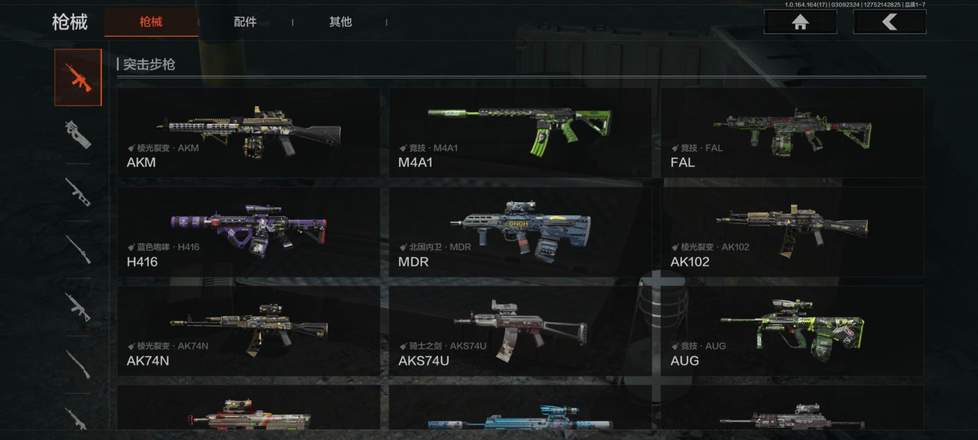 【紫色枪皮】棱光裂变·AKM,棱光裂变·AK102,棱光裂变·AK74N,棱光裂变·莫辛,旗帜·SVDS,旗帜·RPK16,甲胄工艺·T03,顶级外设·F2000