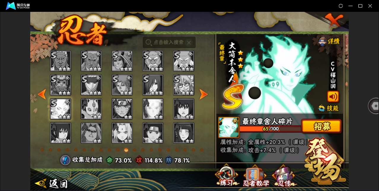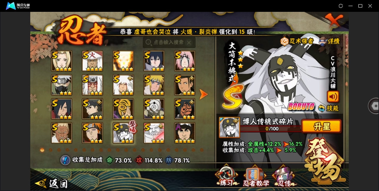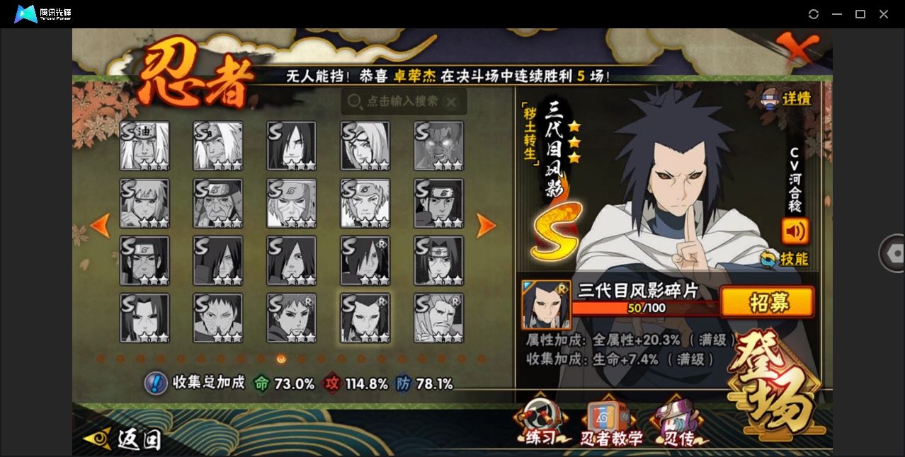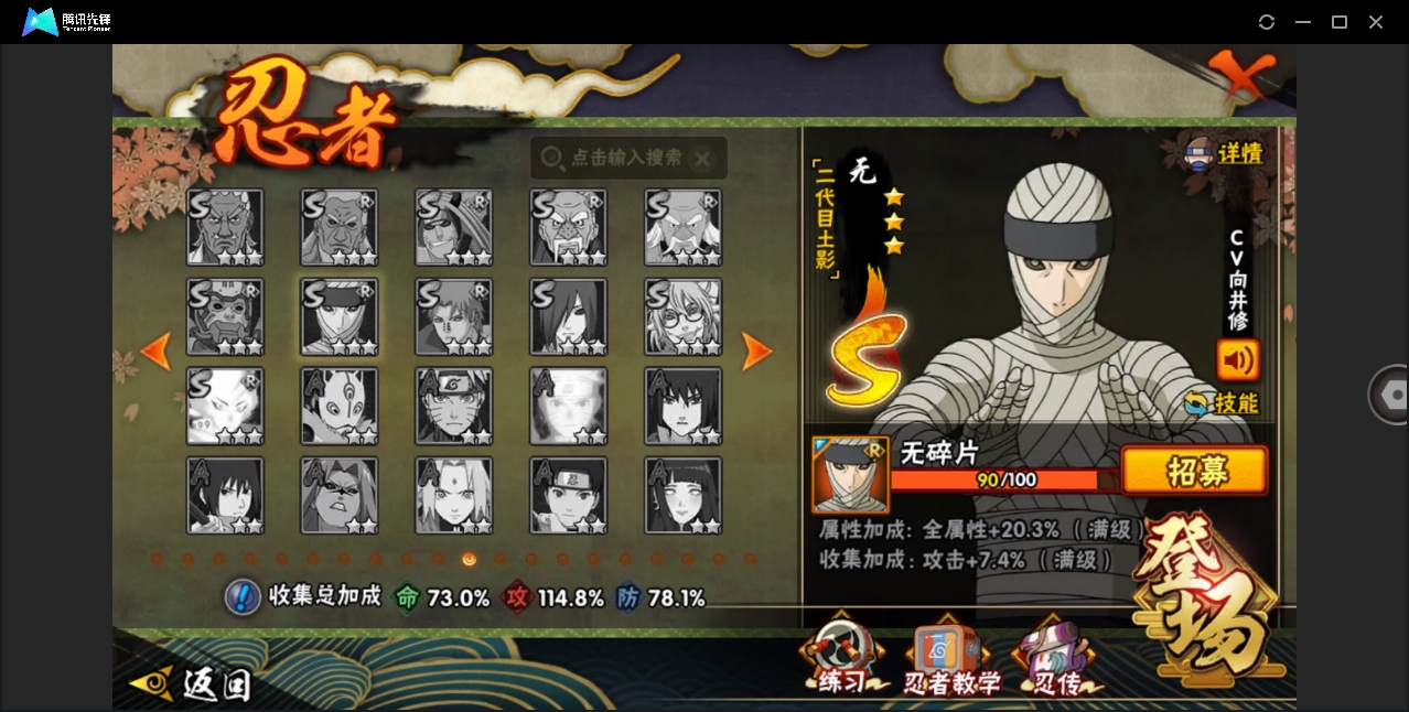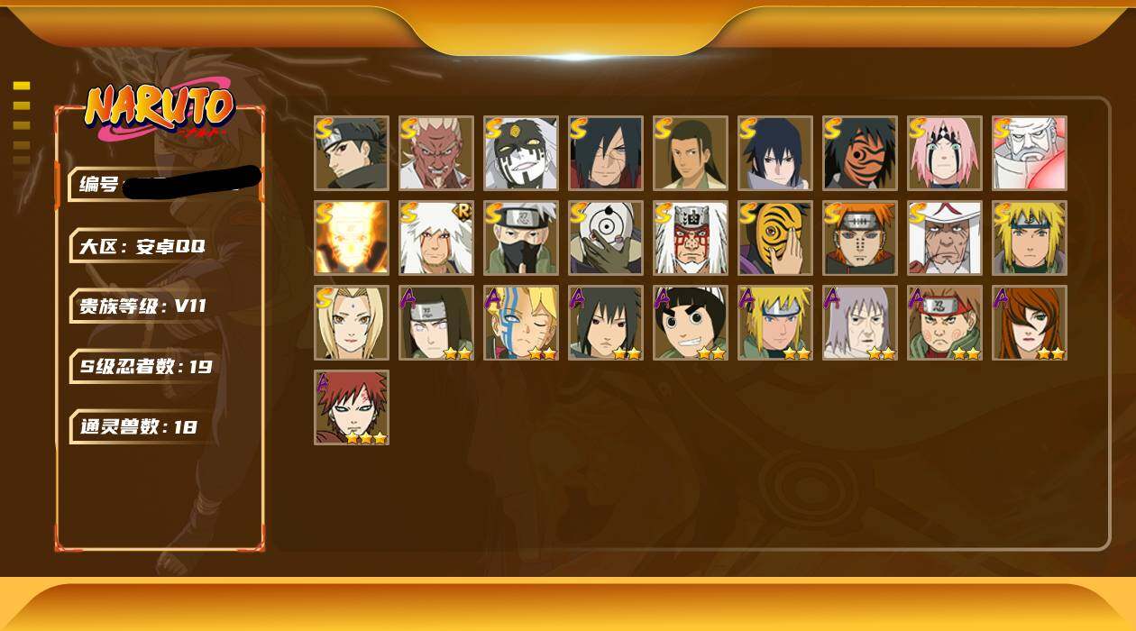 【编号23812可秒换绑】店长推荐特价处理精品号19S级忍者数-20A级忍者数【S级忍者】:宇智波斑「秽土转生·解」(3星),春野樱「忍界大战」(3星),艾「忍界大战」(3星),宇智波止水「须佐能乎」(3星),旗木卡卡西「须佐能乎」(3星),千手柱间「木叶创立」(3星),自来也「仙人模式」(3星),自来也「舞之豪杰」(3星),纲手(4星),猿飞日斩(4星),波风水门(3星),神秘面具男(3星),神秘面具男「红夜之刃」(3星),漩涡鸣人「九喇嘛连结」(3星),佩恩「天道」(3星),宇智波佐助「永恒