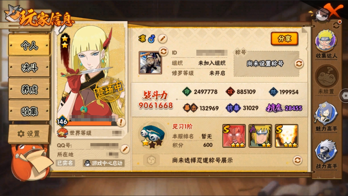 【编号41386可秒换绑】【店长推荐捡漏号】17S级忍者数-33A级忍者数【S级忍者】:长门「秽土转生」(3星),千手扉间「秽土转生」(3星),千手柱间「秽土转生」(3星),宇智波斑「秽土转生」(3星),大野木「忍界大战」(3星),宇智波带土「忍界大战」(3星),艾「忍界大战」(3星),宇智波斑「木叶创立」(3星),艾「三代目雷影」(3星),自来也「舞之豪杰」(3星),大蛇丸(3星),波风水门(3星),漩涡鸣人「九喇嘛连结」(3星),迈特凯「死门」(3星),佩恩「天道」(3星),宇智波佐助「永恒