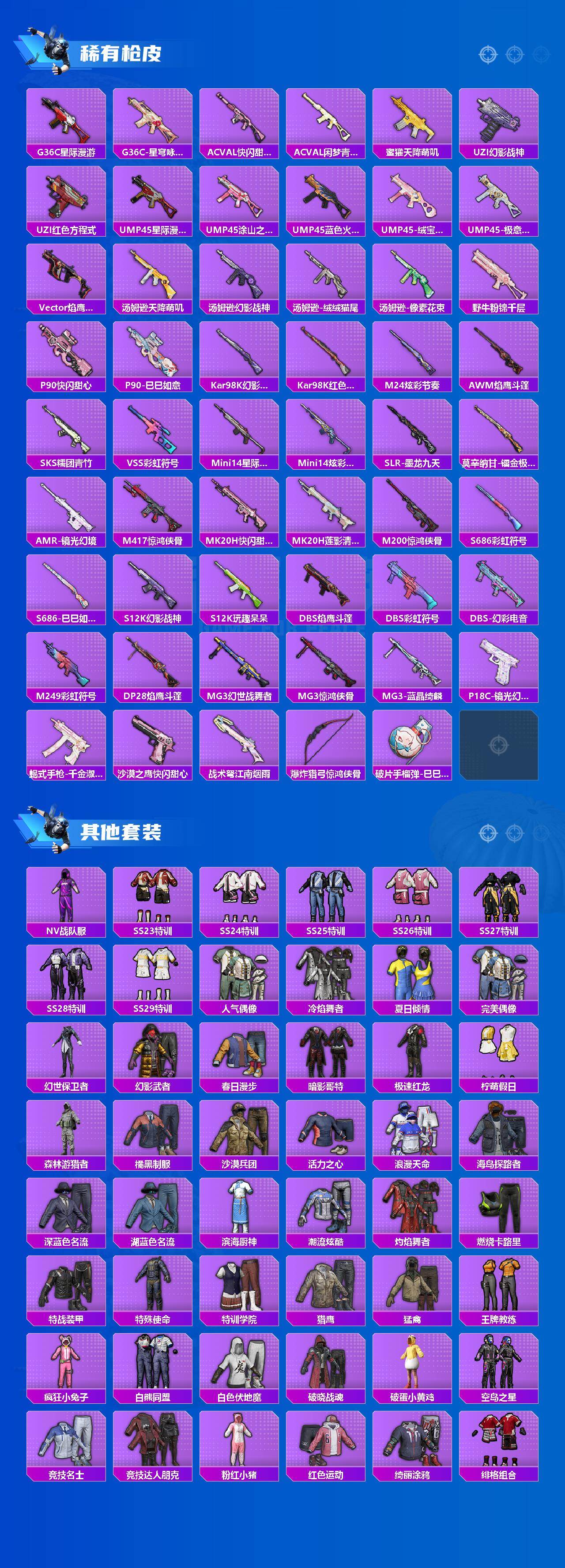 【热门品类】:套装-浪漫天命,套装-都市猎人,套装-派对舞王,套装-AG战队服,套装-龟仙人,套装-暗影哥特,套装-粉红小猪,M416-星际漫游