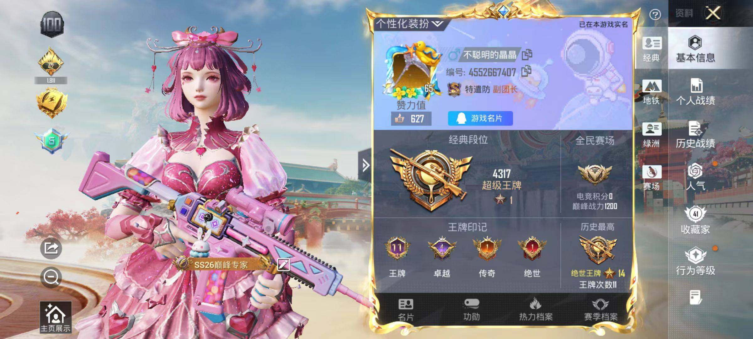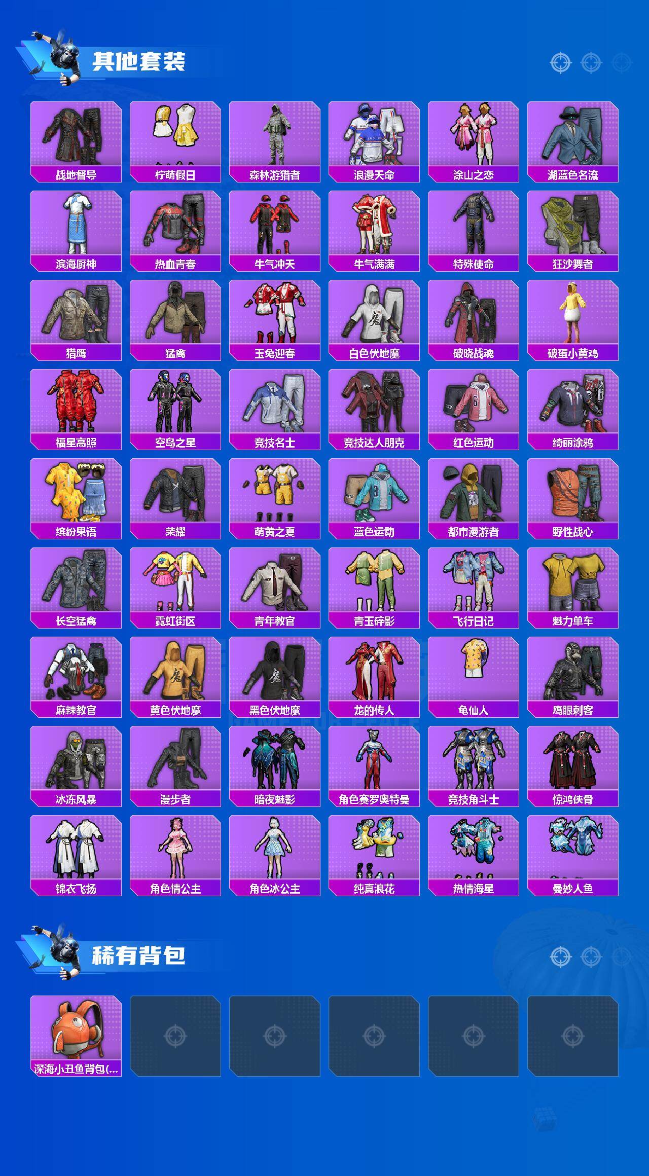 88套装/枪械6/装备109/战备81/王牌印记11/热力值32267/五级AKM-绿萝繁花/五级M416-电玩时刻/五级Kar98K-巳巳如意/四级Mk14-福马献瑞/五级DP-28-豹影疾电/套装-浪漫天命/套装-龟仙人/AKM-绿萝繁华/M416-电玩时刻/Kar98K-巳巳如意/MK14-闲梦青缨/Mk14-福马献瑞/DP-28-豹影疾电/炫彩糖果飞行器/绝对恒星降落伞/莲影清波降落伞/