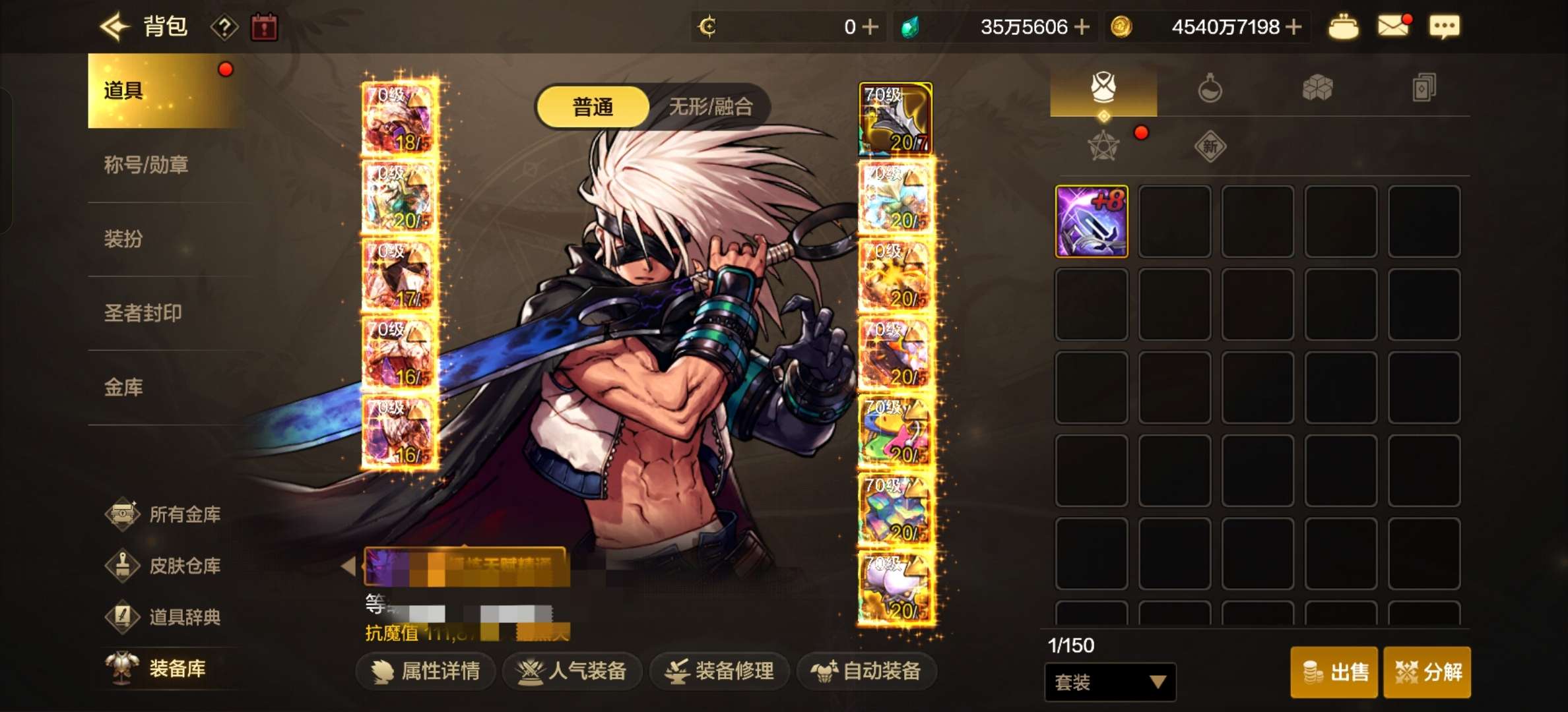 最新4把增幅10武器,4角色全身强化20,其他角色全是都是强化15以上,剑魂背里一把增幅8星期一可以