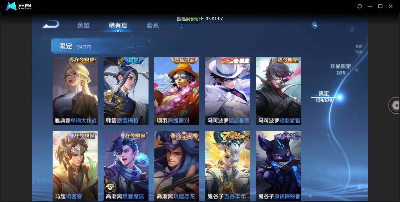 【W6060】精品万场号.满铭文(热门皮肤)赤影疾锋.器灵螭龙剑.怪盗基德.云