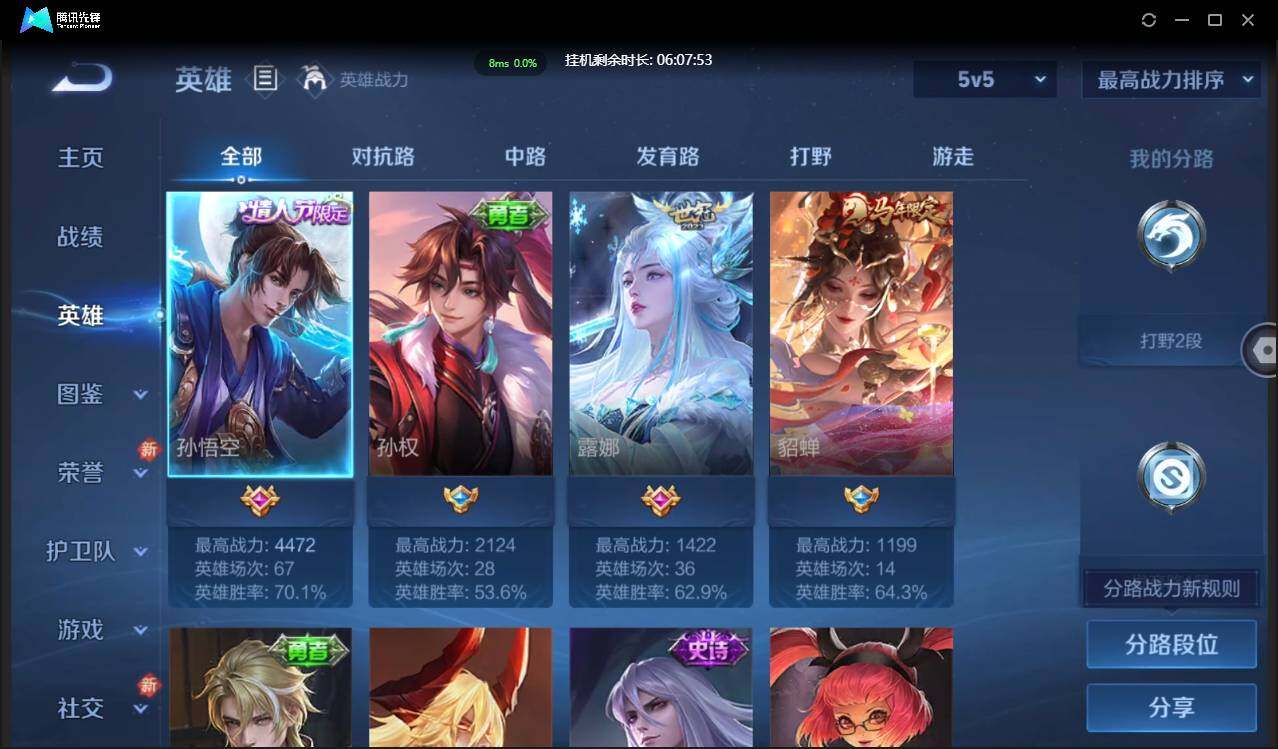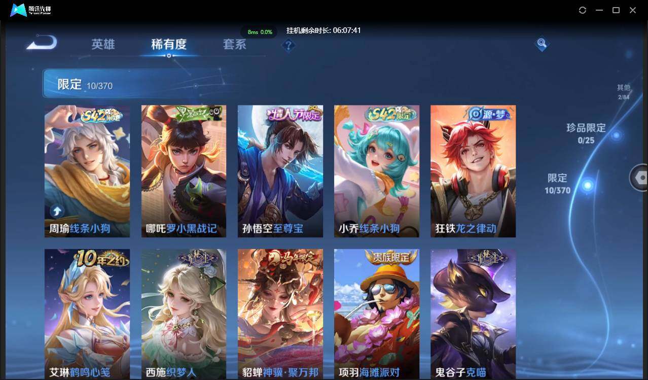 贵4-36英雄-33皮肤-3传说-10限定-4按键-贵族积分3933