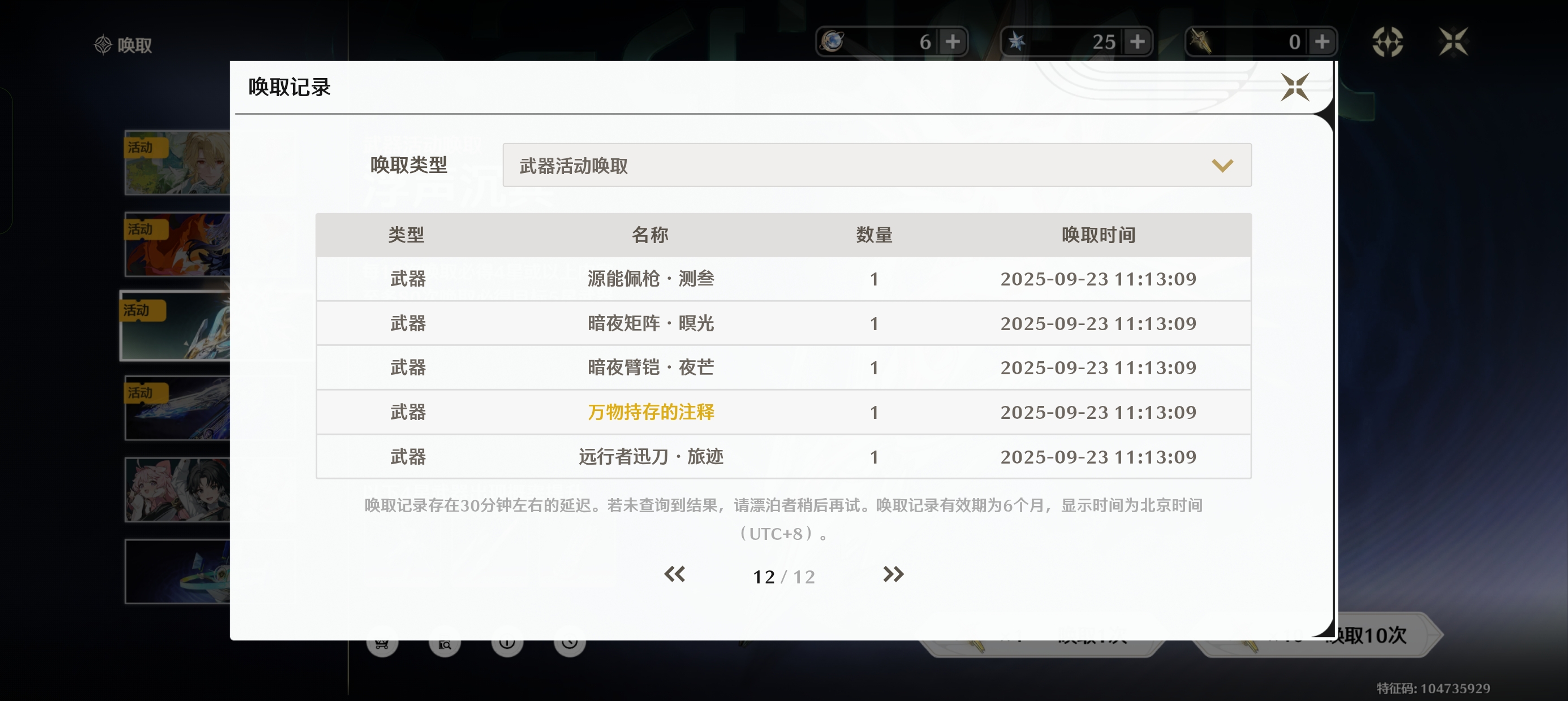 今夕皮肤号,11限定角色带专武,卡池大保底垫了30,武器池垫了60