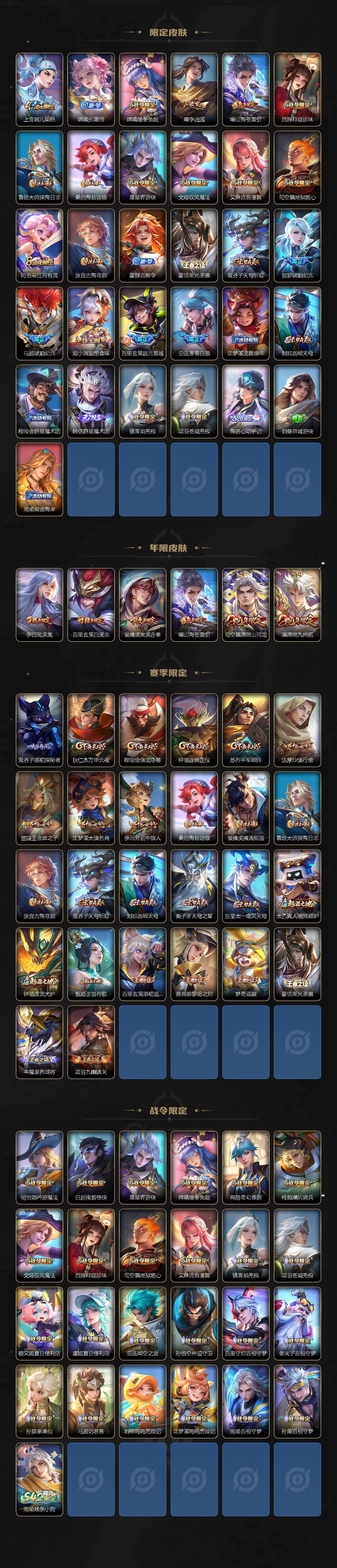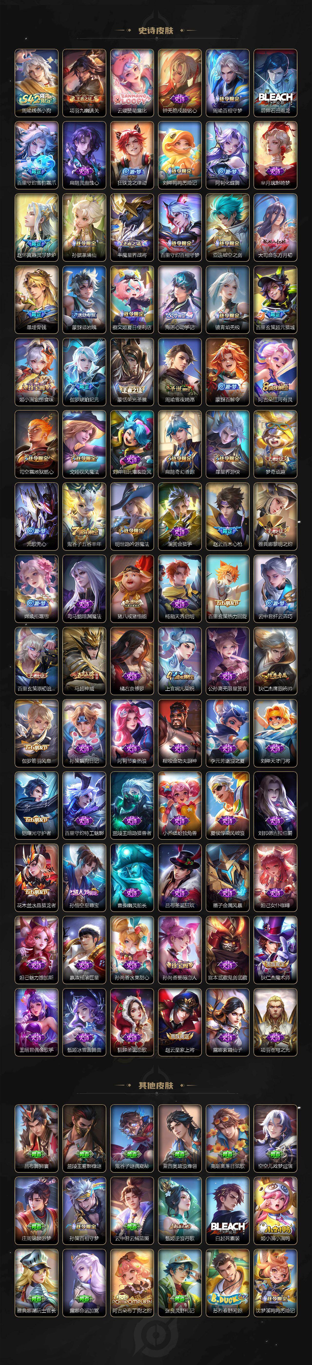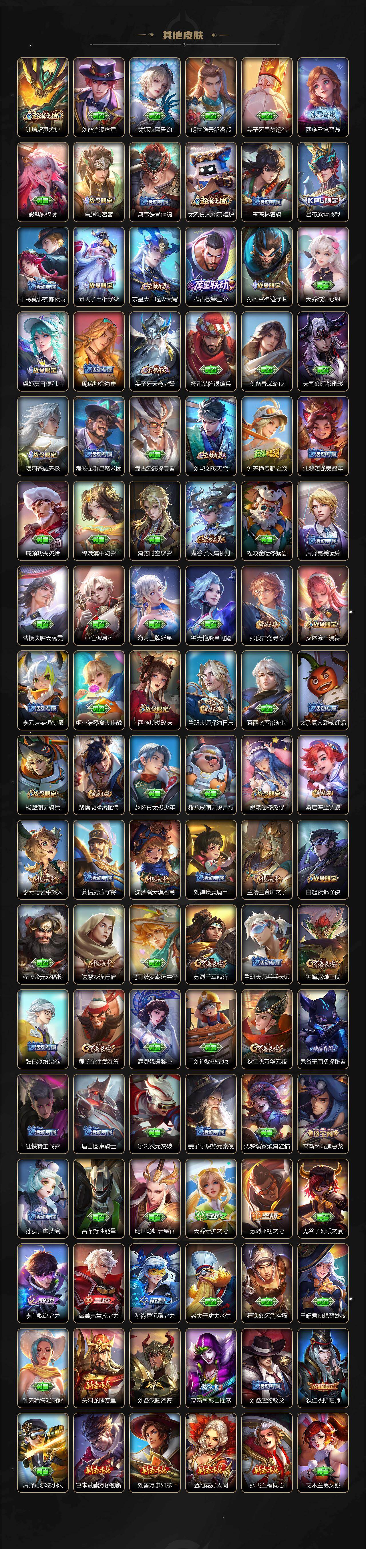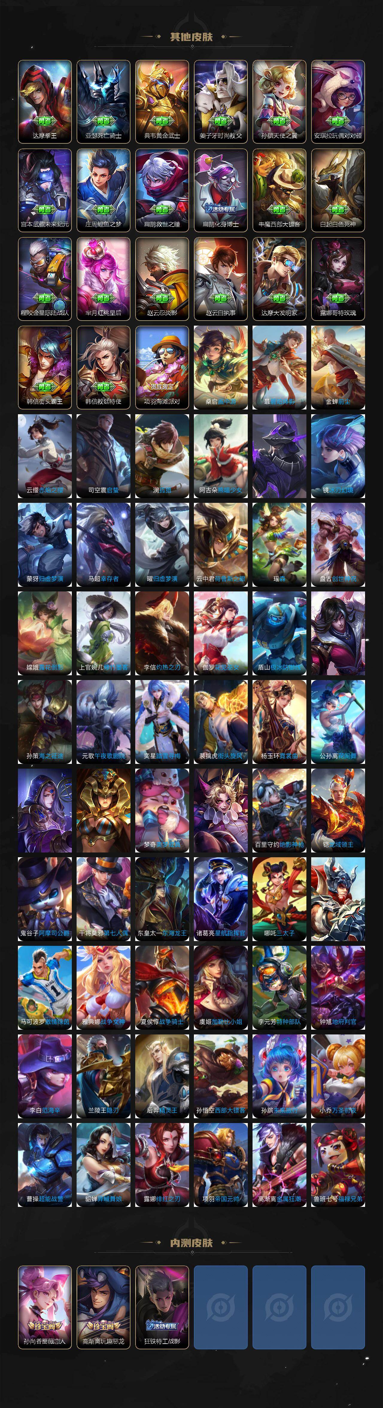 【英雄全皮】:马超全皮,敖隐全皮,曜全皮,司空震全皮,暃全皮,空空儿全皮,影全皮,海诺全皮