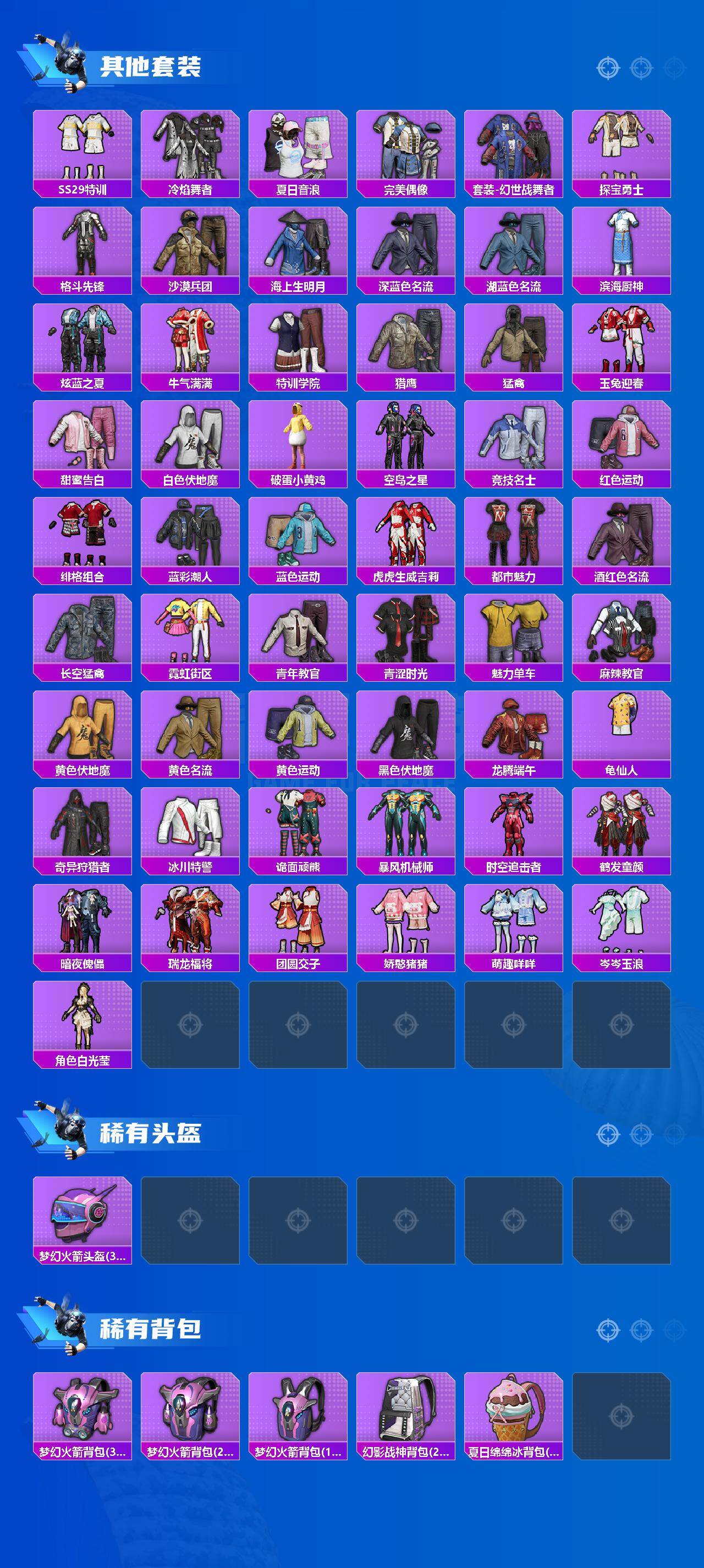 88套装/枪械1/装备106/载具1/战备78/王牌印记8/热力值31967/五级Kar98K-巳巳如意/粉装-梦幻火箭/奇异狩猎者/套装-龟仙人/幻影战神/梦幻火箭/绚金战神/彩虹甜喵/双人摩托_梦幻火箭/Kar98K-巳巳如意/太空嘟嘟飞行器/葫芦兄弟降落伞/彩虹甜喵降落伞/旋转彩虹降落伞/精灵梦叶罗丽降落伞/冷漠罗丽降落伞/龟仙人/套装-极速光影/角色-幽雨猫猫/AKM-恐龙拽拽/AKM-