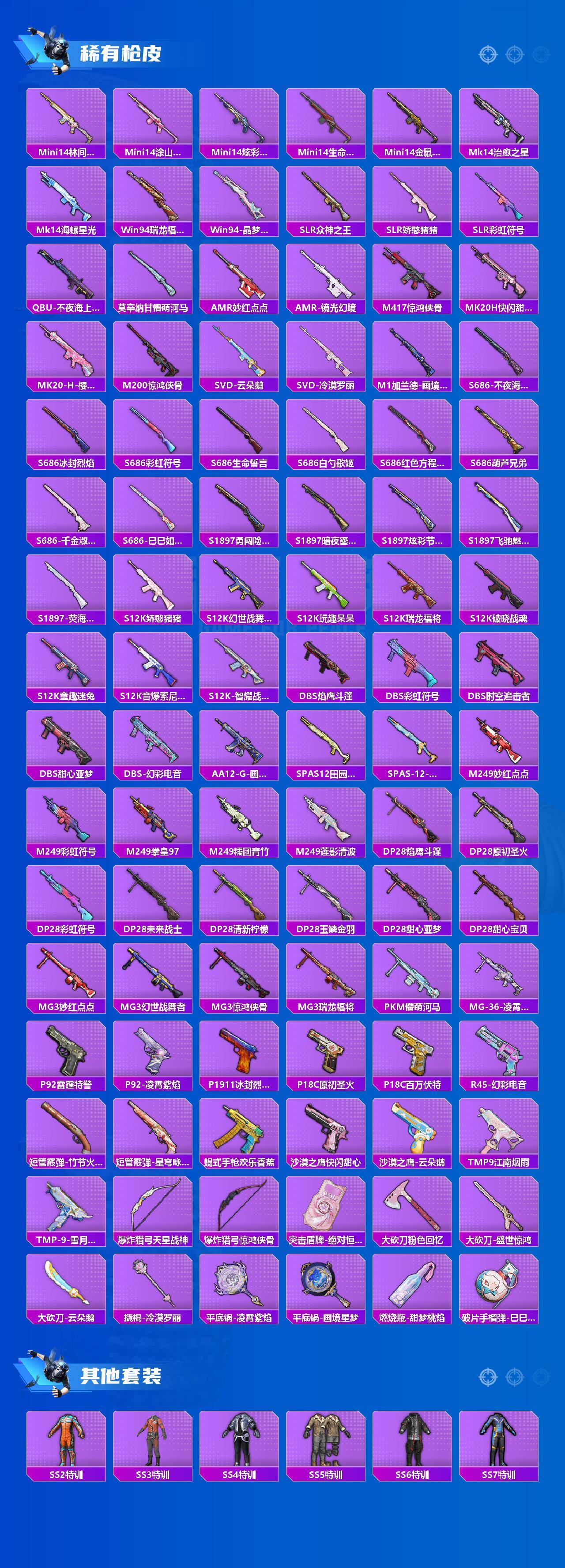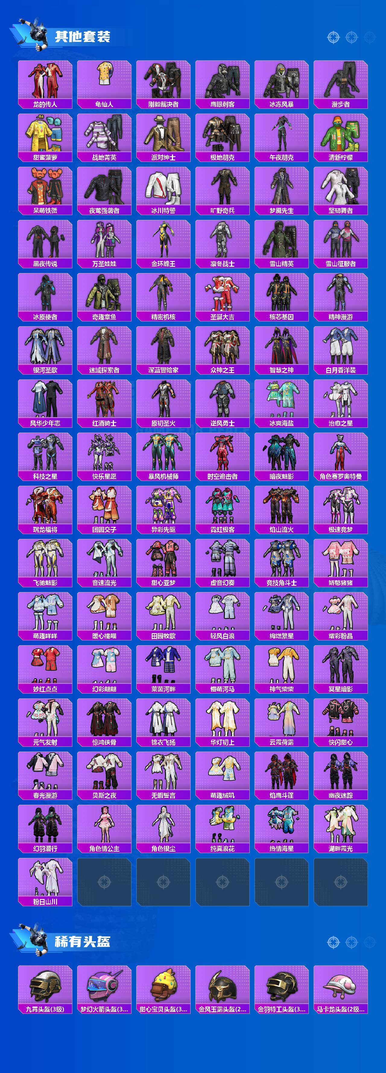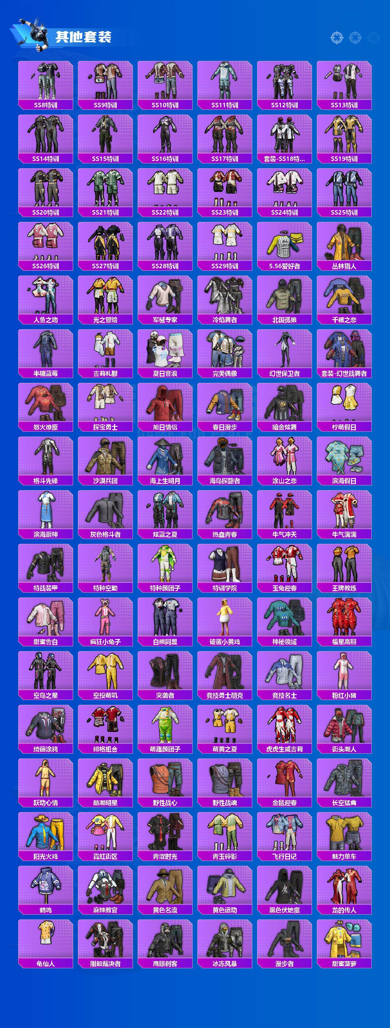 【粉色套装】:角色-绝对恒星,粉装-缤纷油彩,粉装-王牌四分卫,粉装-星之彼岸,粉装-馨动时刻,粉装-暗夜玫瑰,粉装-彩虹鹿灵,粉装-山涧鹿灵,粉装-妙趣可丽