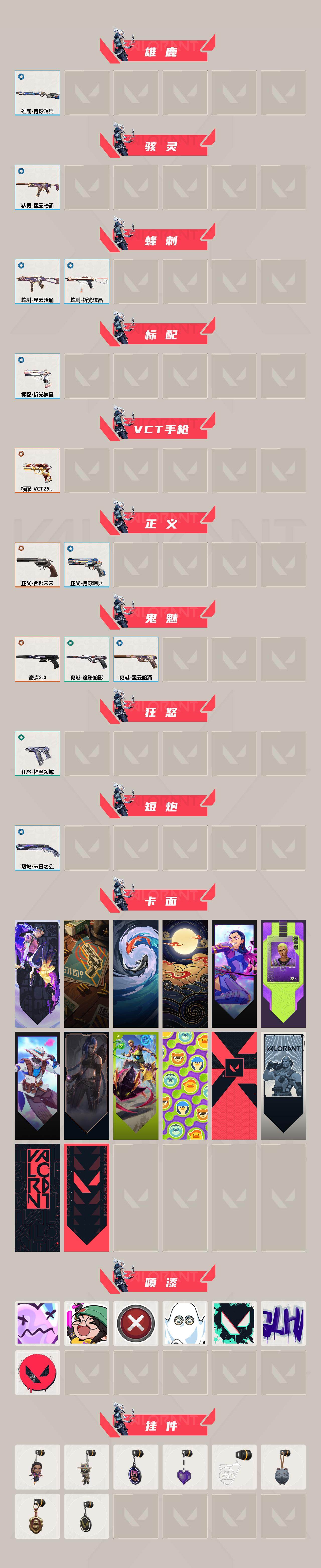 【近战武器】:近战武器-魔术火花,近战武器-剥皮小刀,近战武器-VCT 2025 爪刀,近战武器-黑波之刃,近战武器-诡秘蛇影 军刀,近战武器-神圣领域 战刀,近战武器-日耀风暴 遗器,近战武器-魔术火花