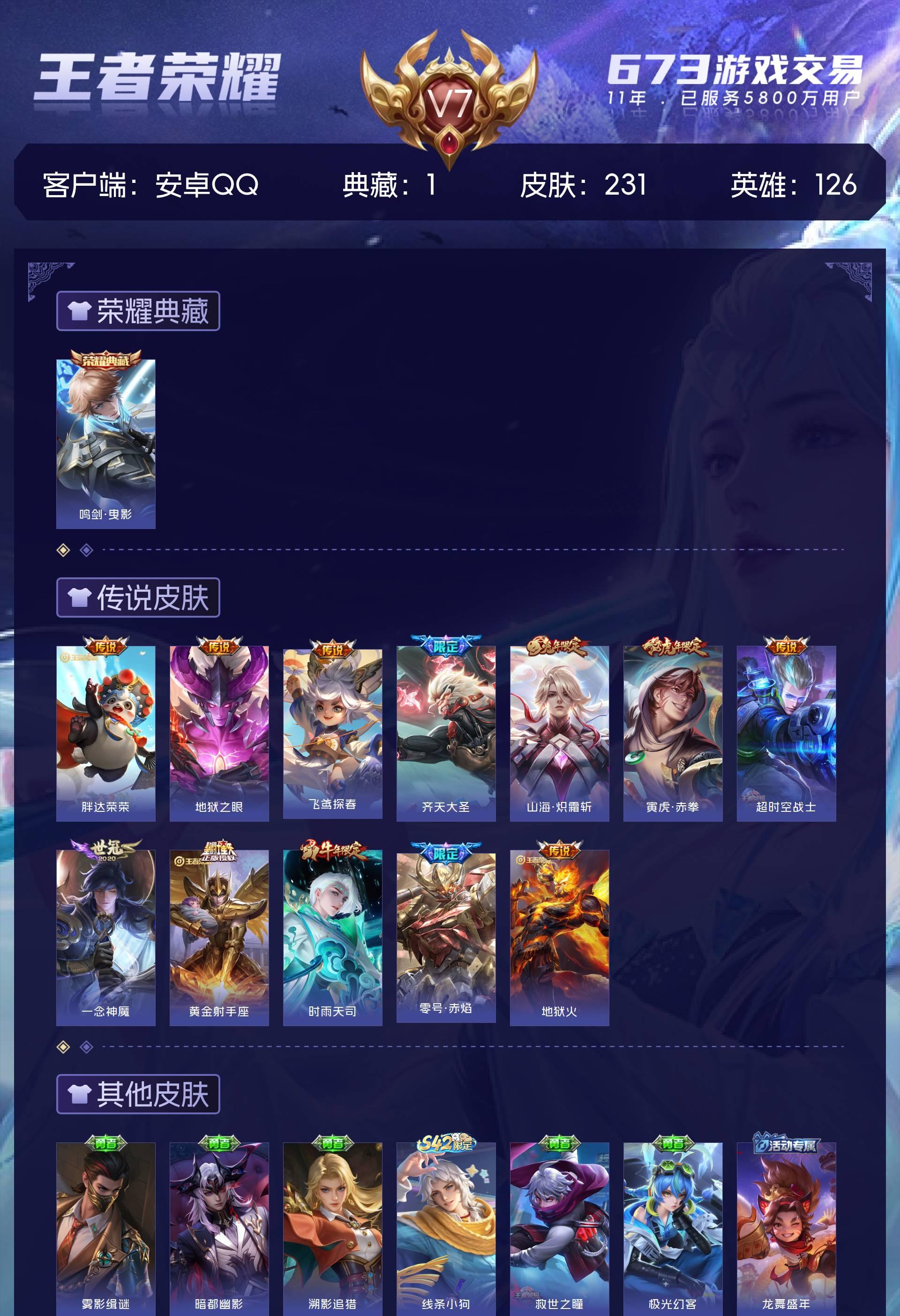 V7 皮肤231 英雄126 荣耀王者 荣耀典藏1 传说12 其他皮肤224