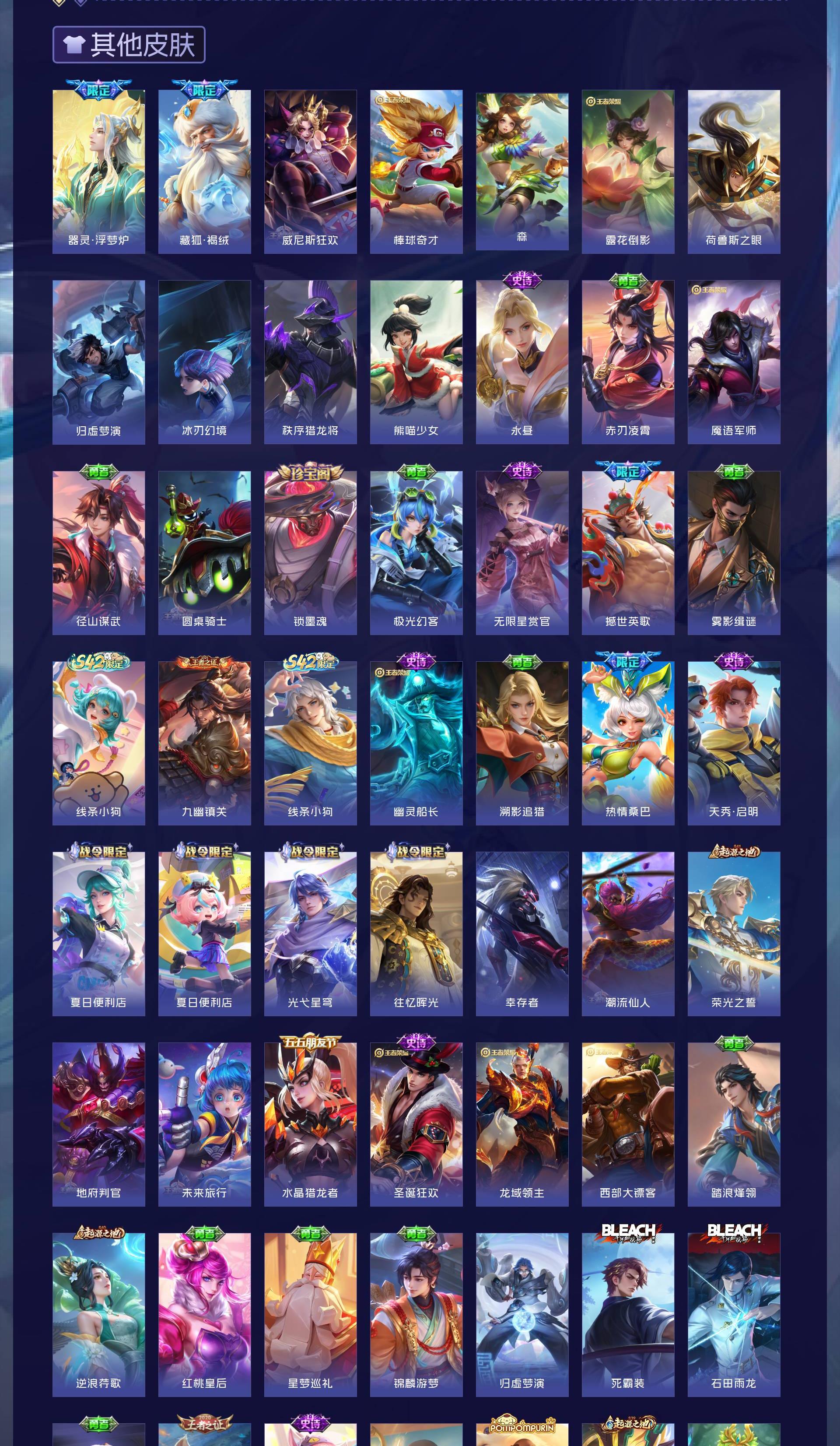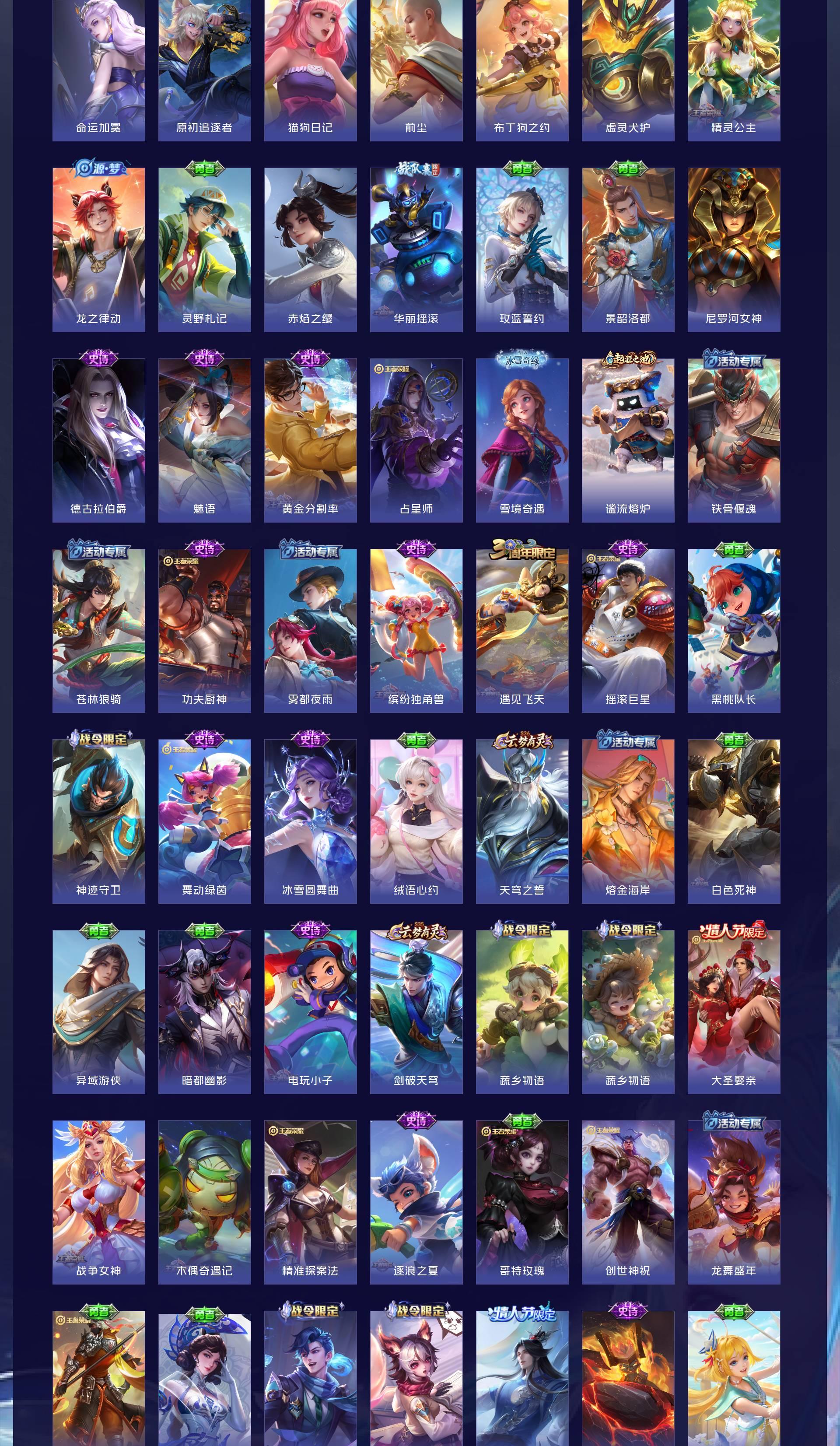 V8 皮肤319 英雄128 传奇王者 荣耀典藏1 无双皮肤1 传说18 其他皮肤305