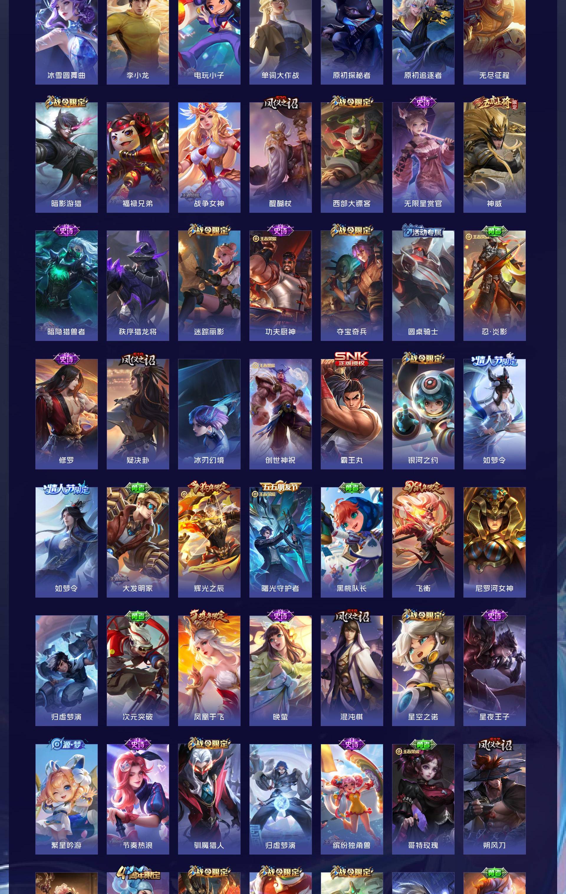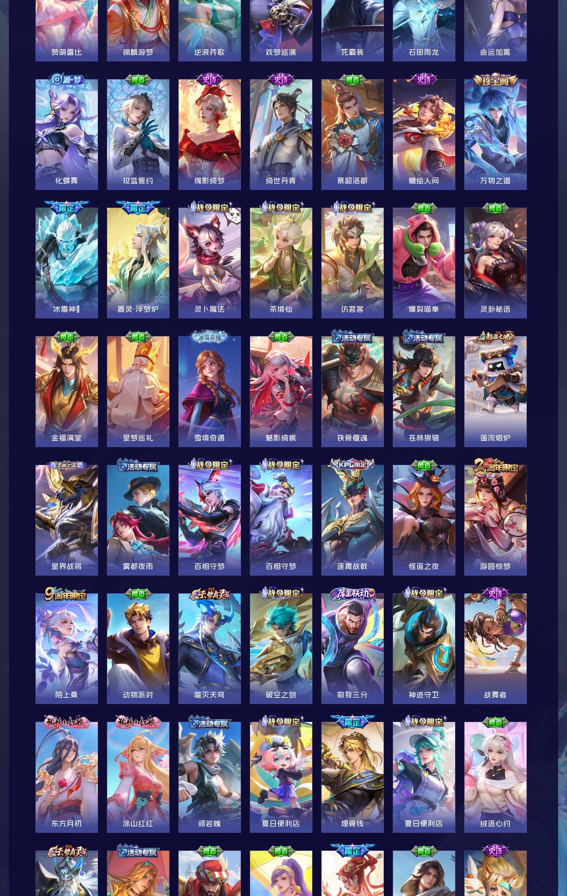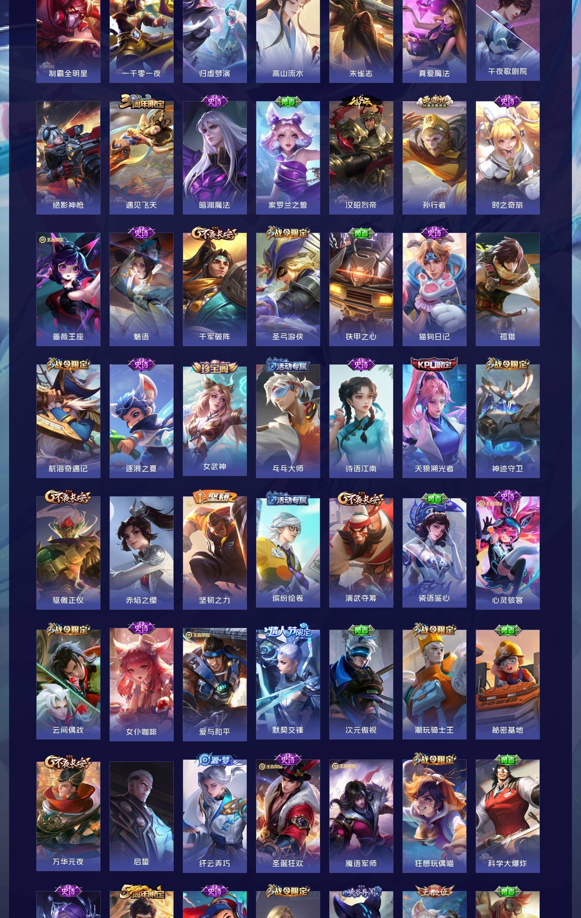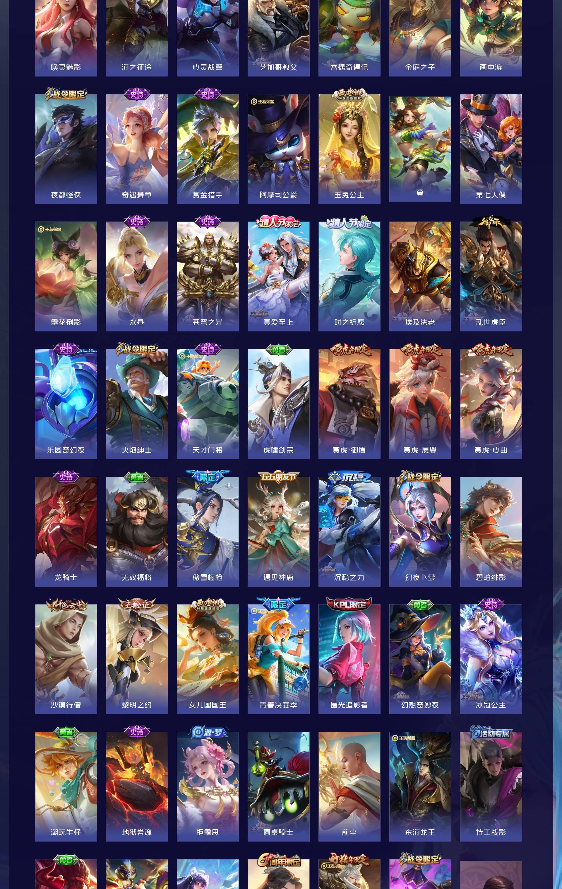 V10 皮肤634 英雄129 荣耀王者 荣耀典藏8 无双皮肤5 珍品传说3 传说99 其他皮肤525