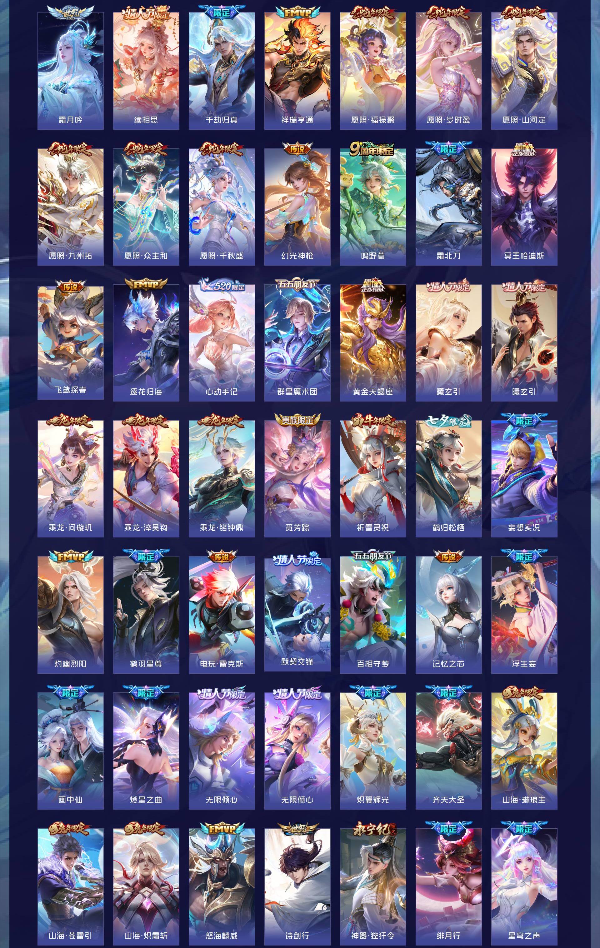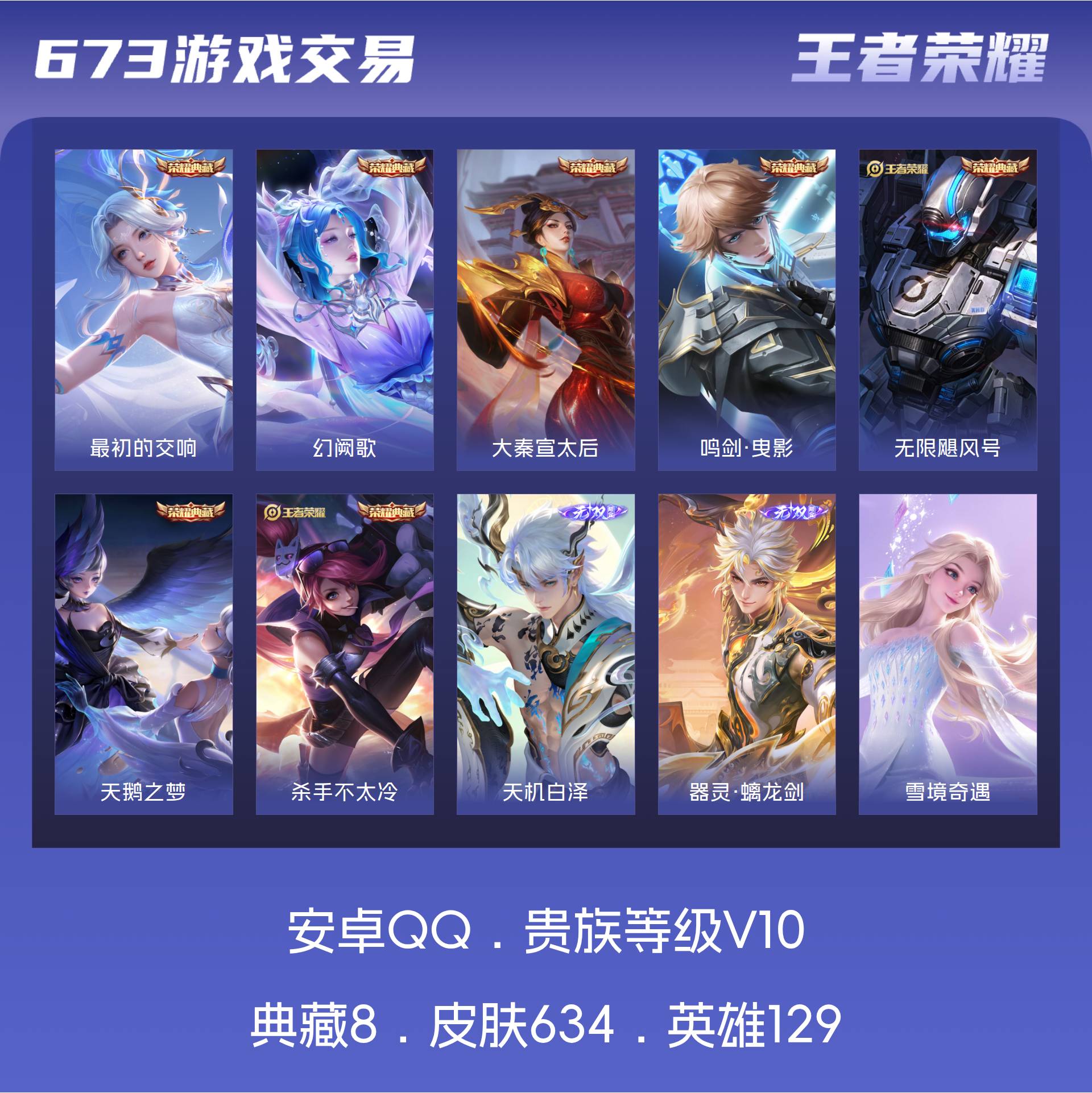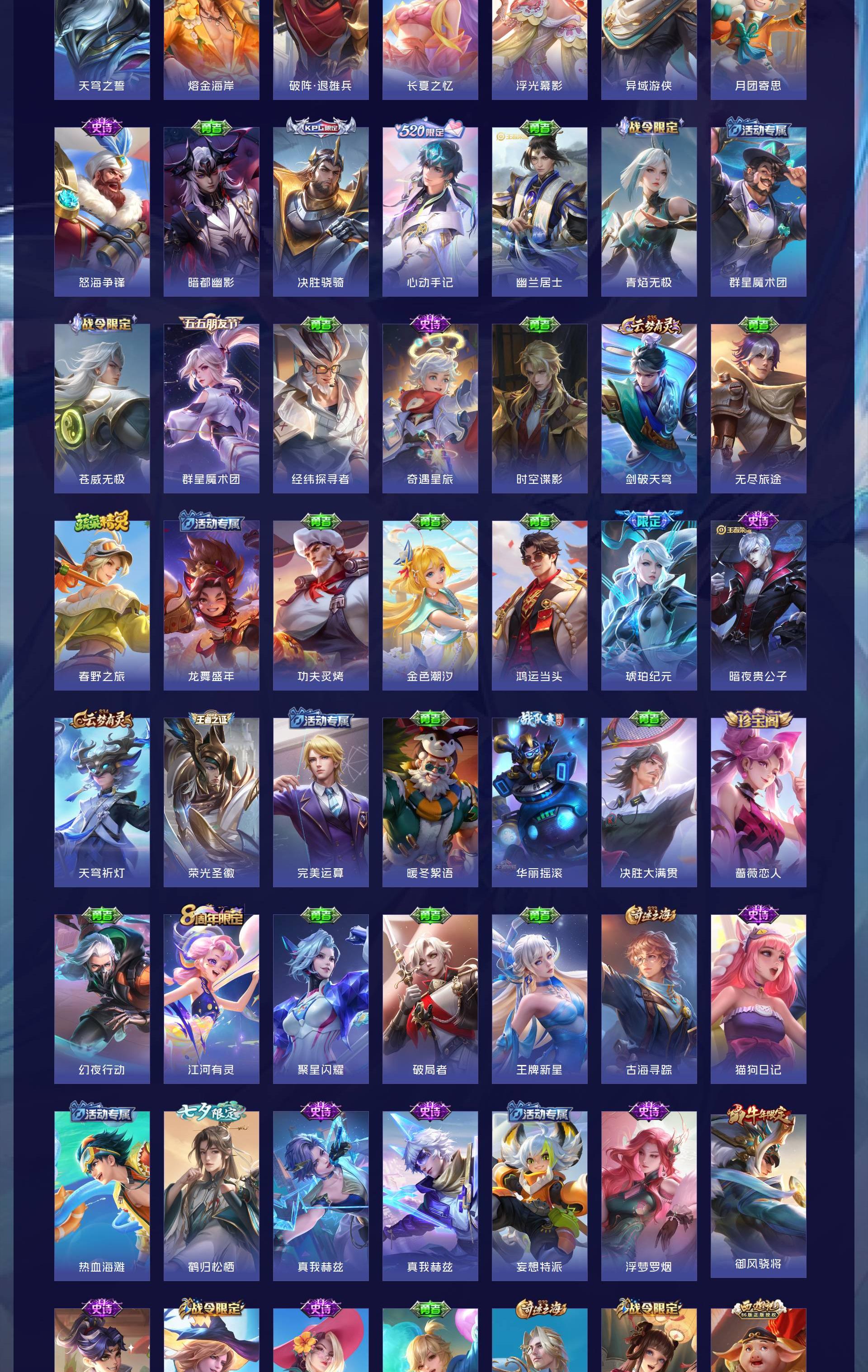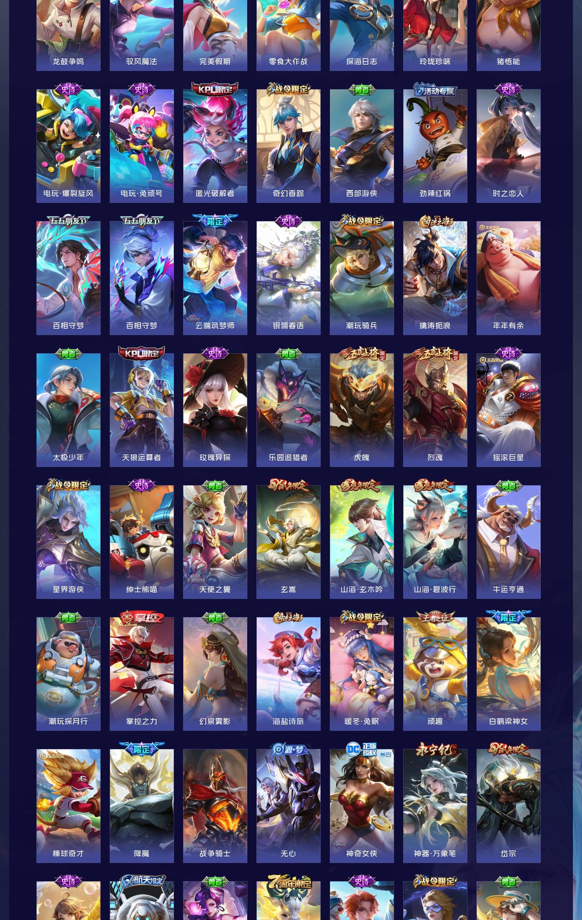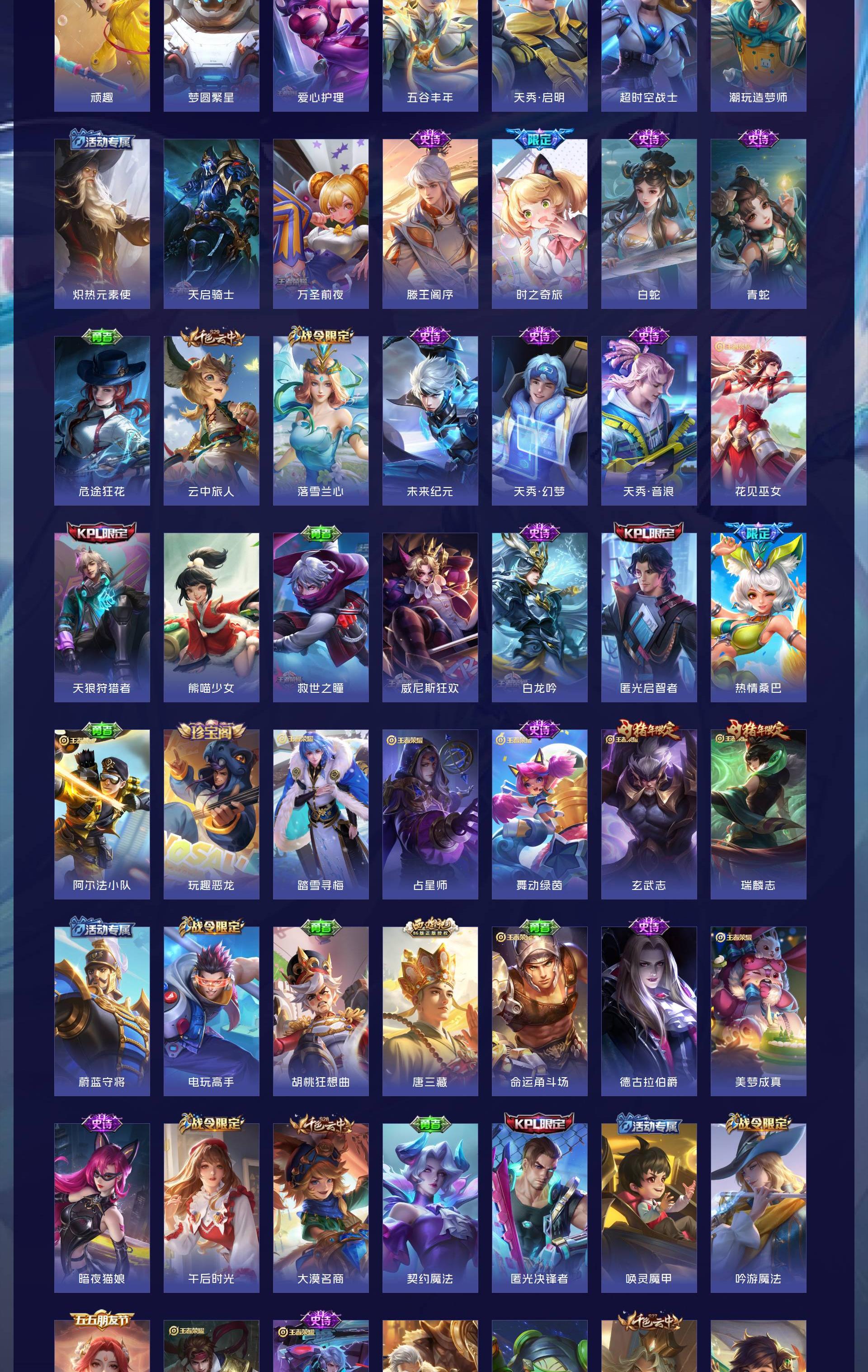 V10 皮肤634 英雄129 荣耀王者 荣耀典藏8 无双皮肤5 珍品传说3 传说99 其他皮肤525