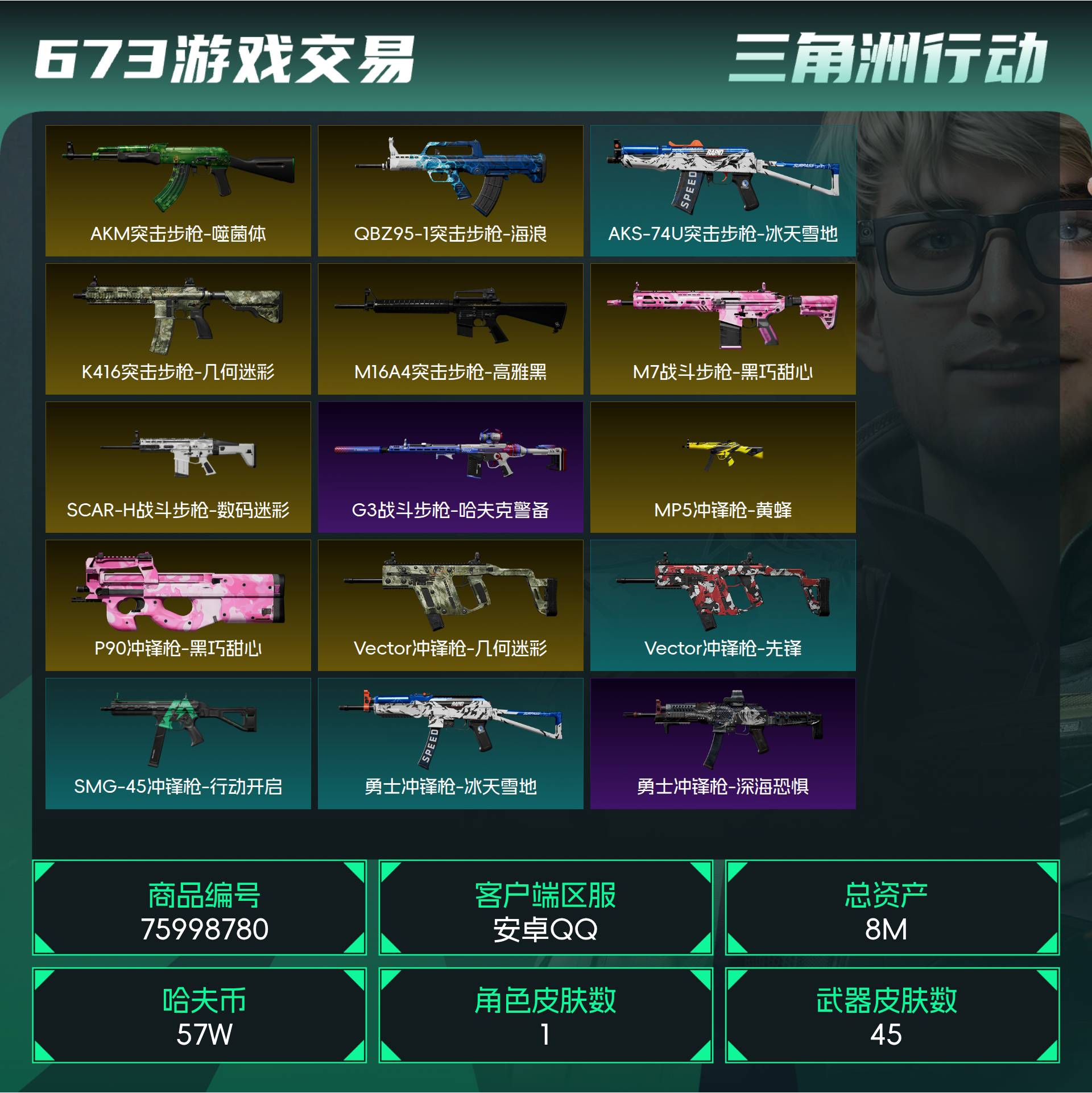 烽火段位钻石3 战场段位军士长1 总资产8M 哈夫币57W 干员1 挂饰5 近战2 枪械45 载具3