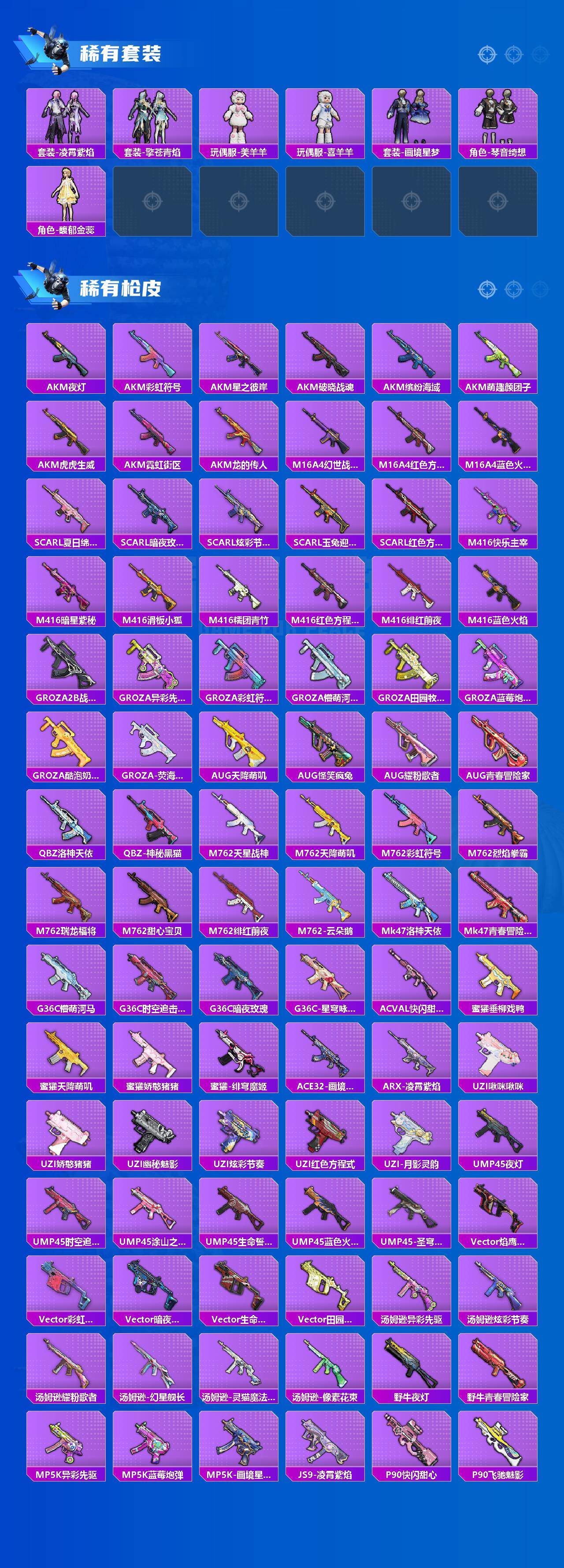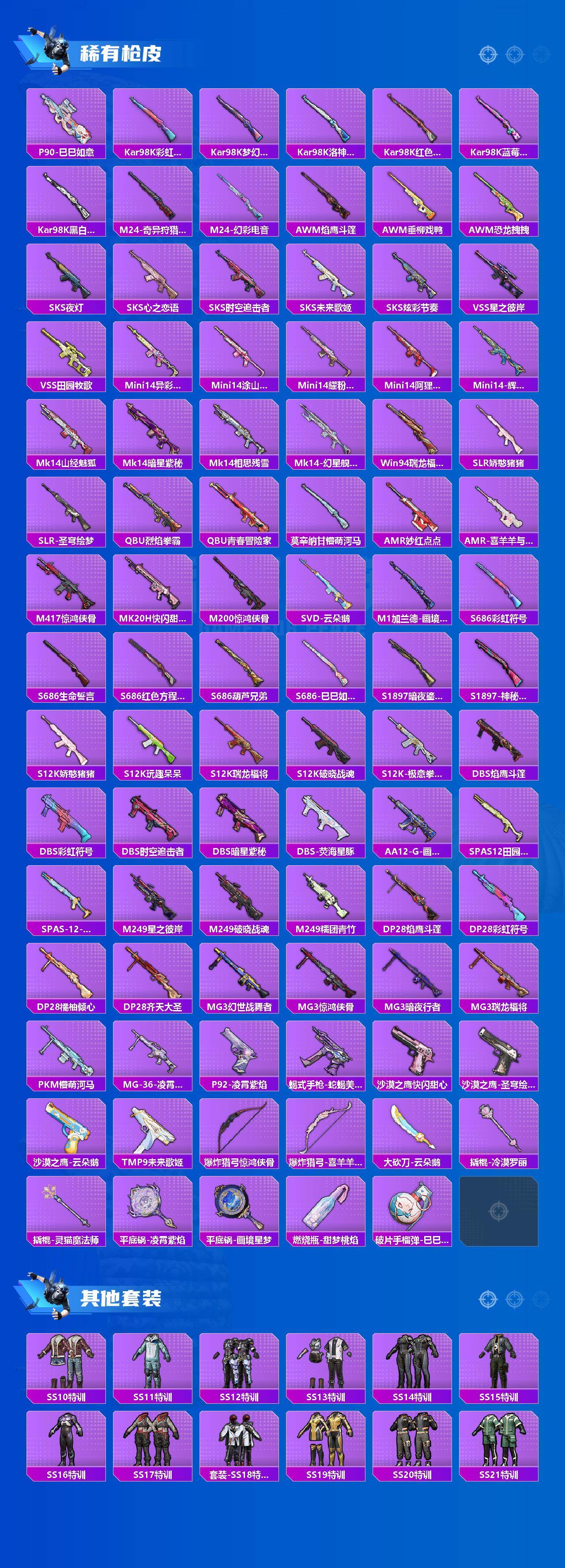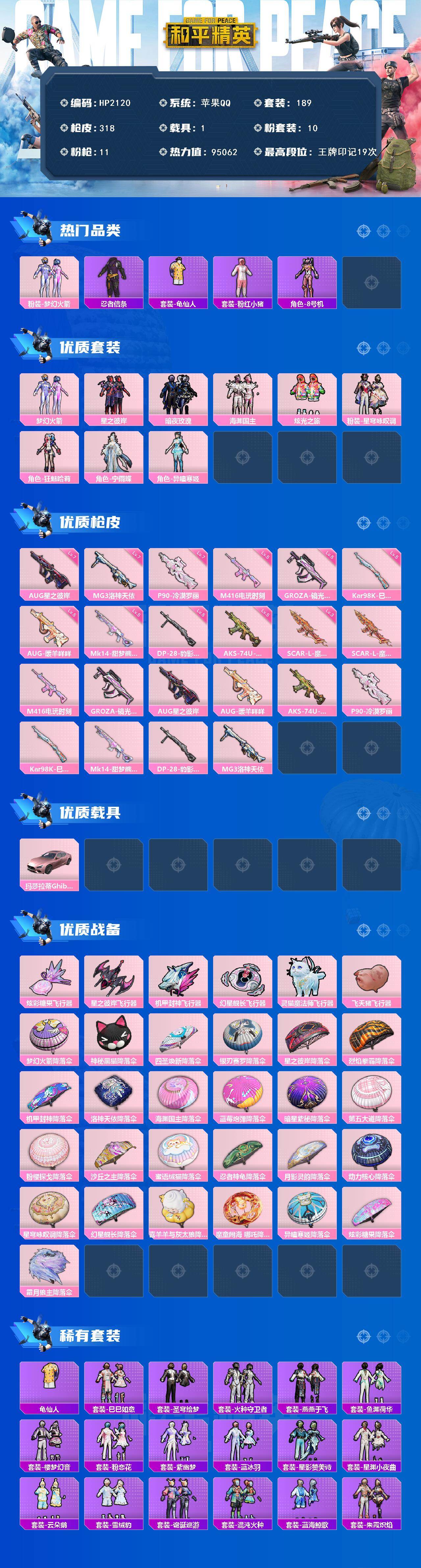 【HP2120】189套装/枪械11/装备404/载具1/战备212/王牌印记19/热力值95062/三级SCAR-L-魔童闹海 哪吒/五级M416-电玩时刻/五级GROZA-镜光银凌/七级AUG-星之彼岸/五级AUG-暖羊咩咩/五级AKS-74U-森灵之息/七级P90-冷漠罗丽/五级Kar98K-巳巳如意/五级Mk14-甜梦熊击/五级DP-28-豹影疾电/七级MG3-洛神天依/粉装-梦幻火箭/套装-忍者信条/套装-龟仙人/套装-粉红小猪/角色-8号机/粉装-星之彼岸/粉装-暗夜玫瑰/粉装-海渊