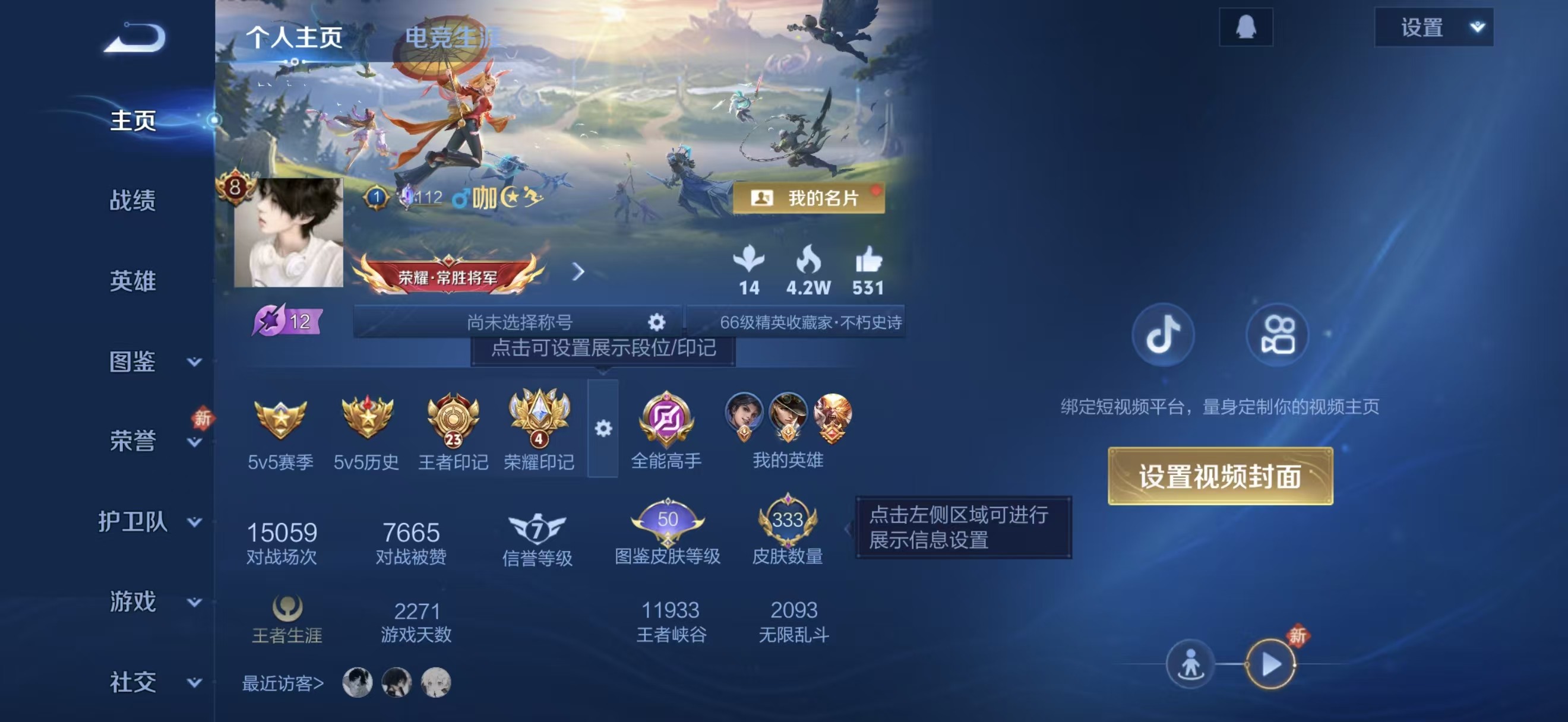 V8 皮肤333 英雄128 最强王者 荣耀典藏1 无双皮肤1 珍品传说2 传说16 其他皮肤320