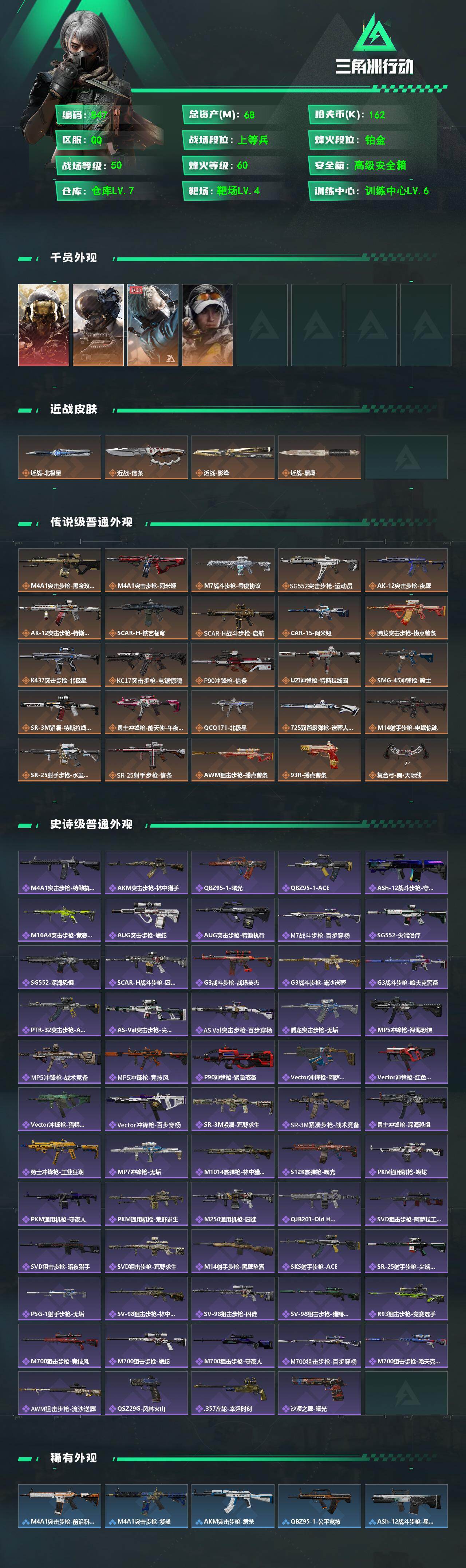 68m总资产-1623k哈伏币-60烽火等级-铂金-50战场等级-上等兵【近