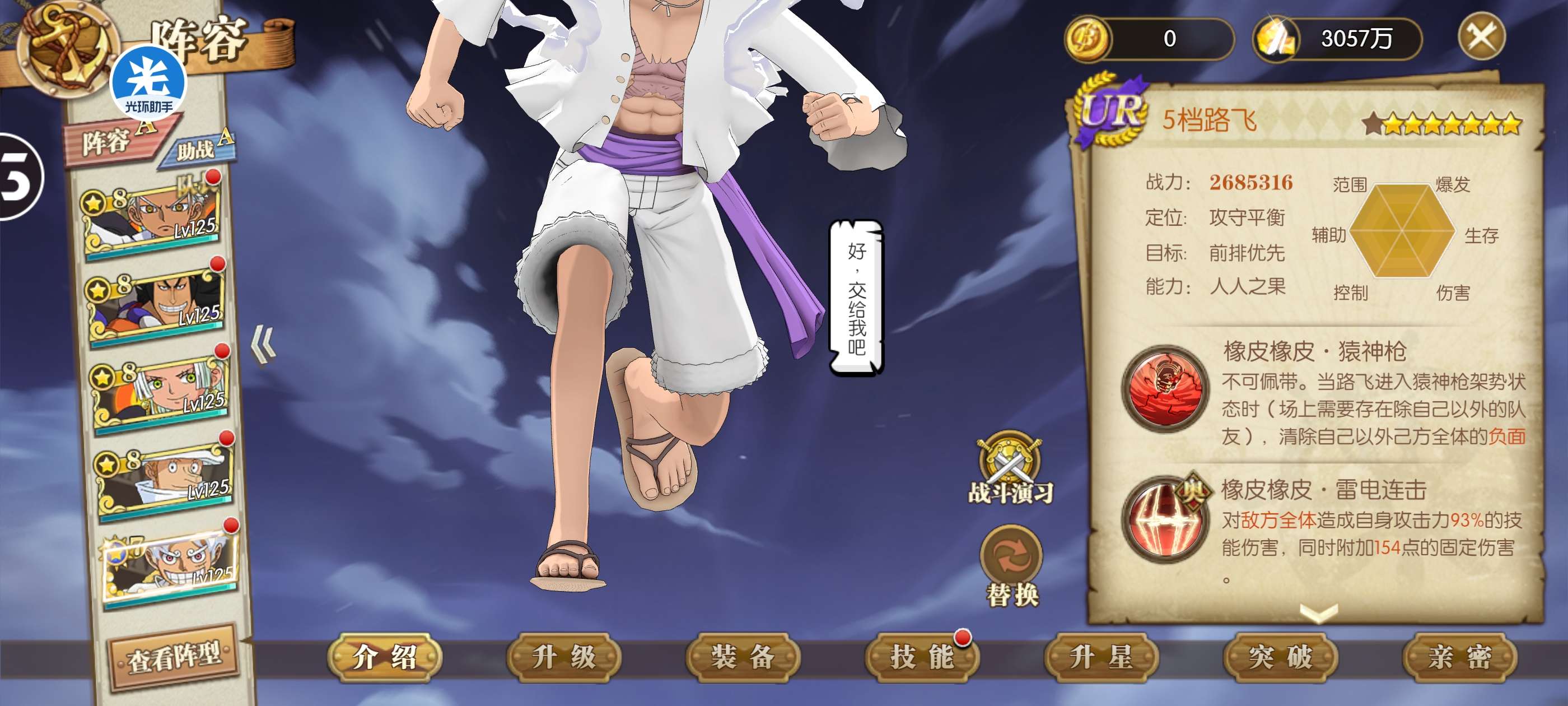7星UR尼卡路飞炽天使阵容背包还有UR卷子等UR尼卡路飞返厂可以八星 新区左无585,vip8有小助