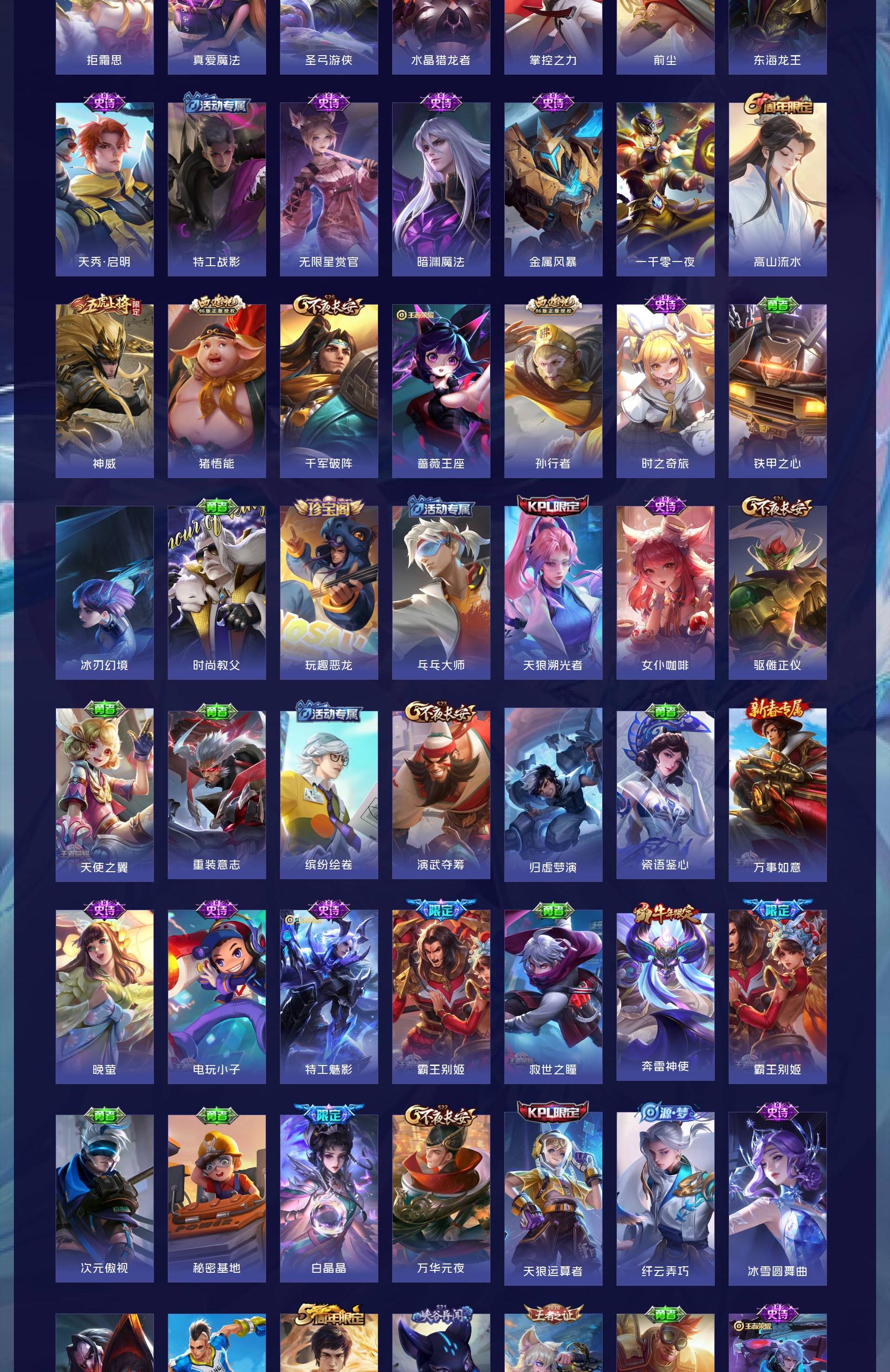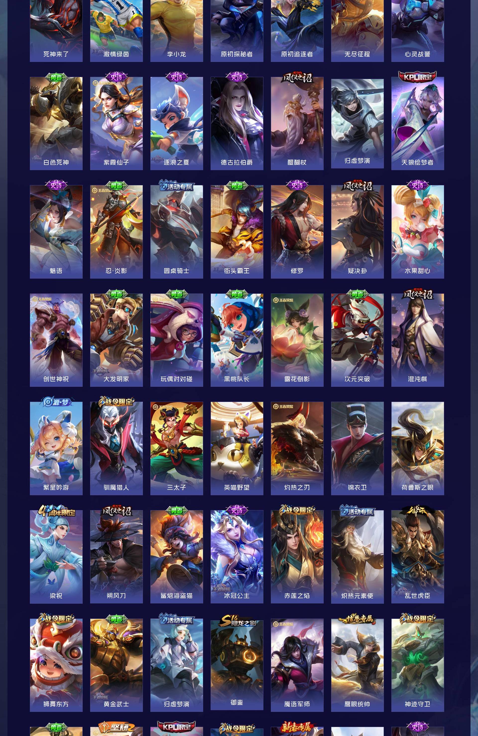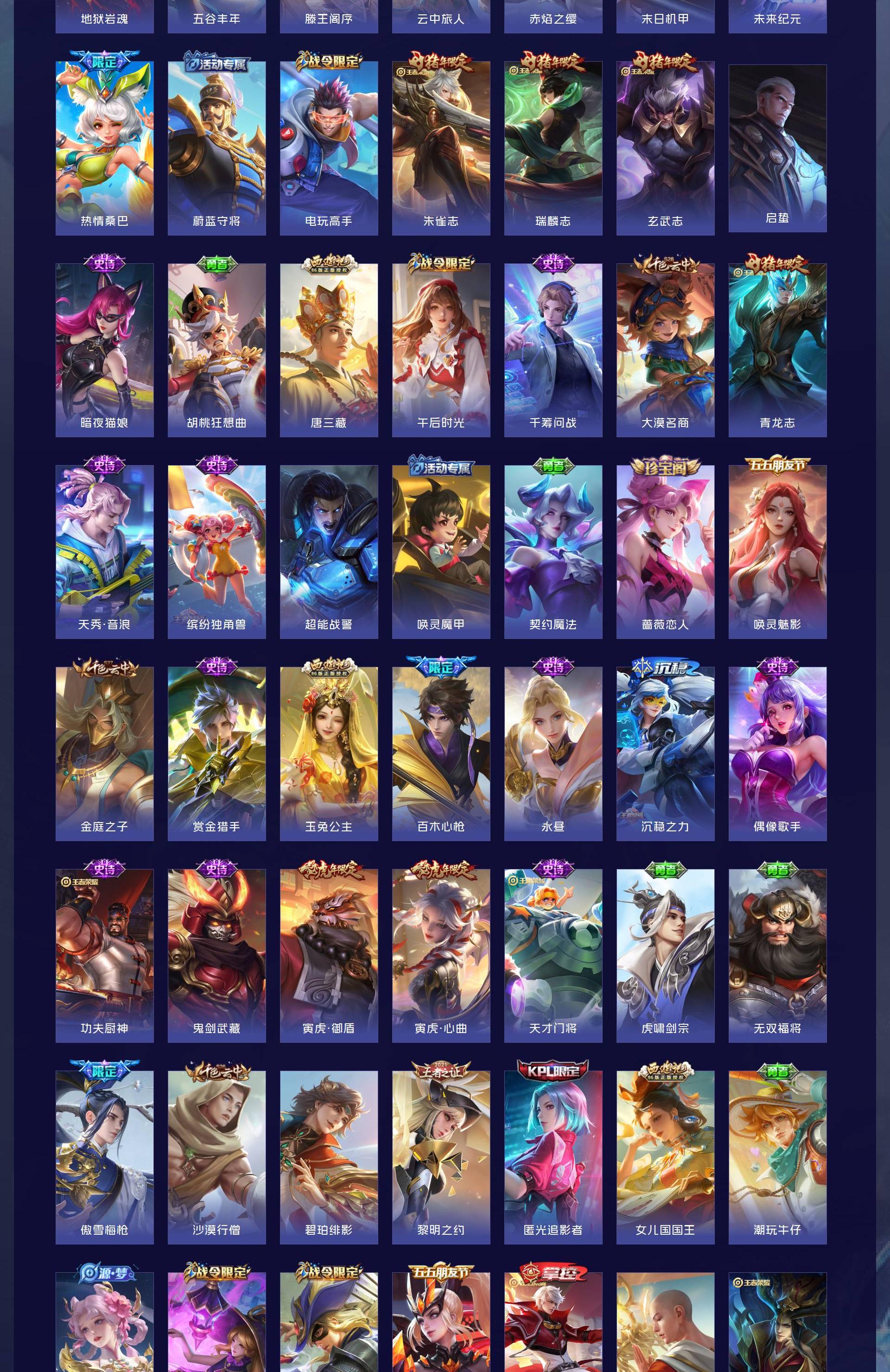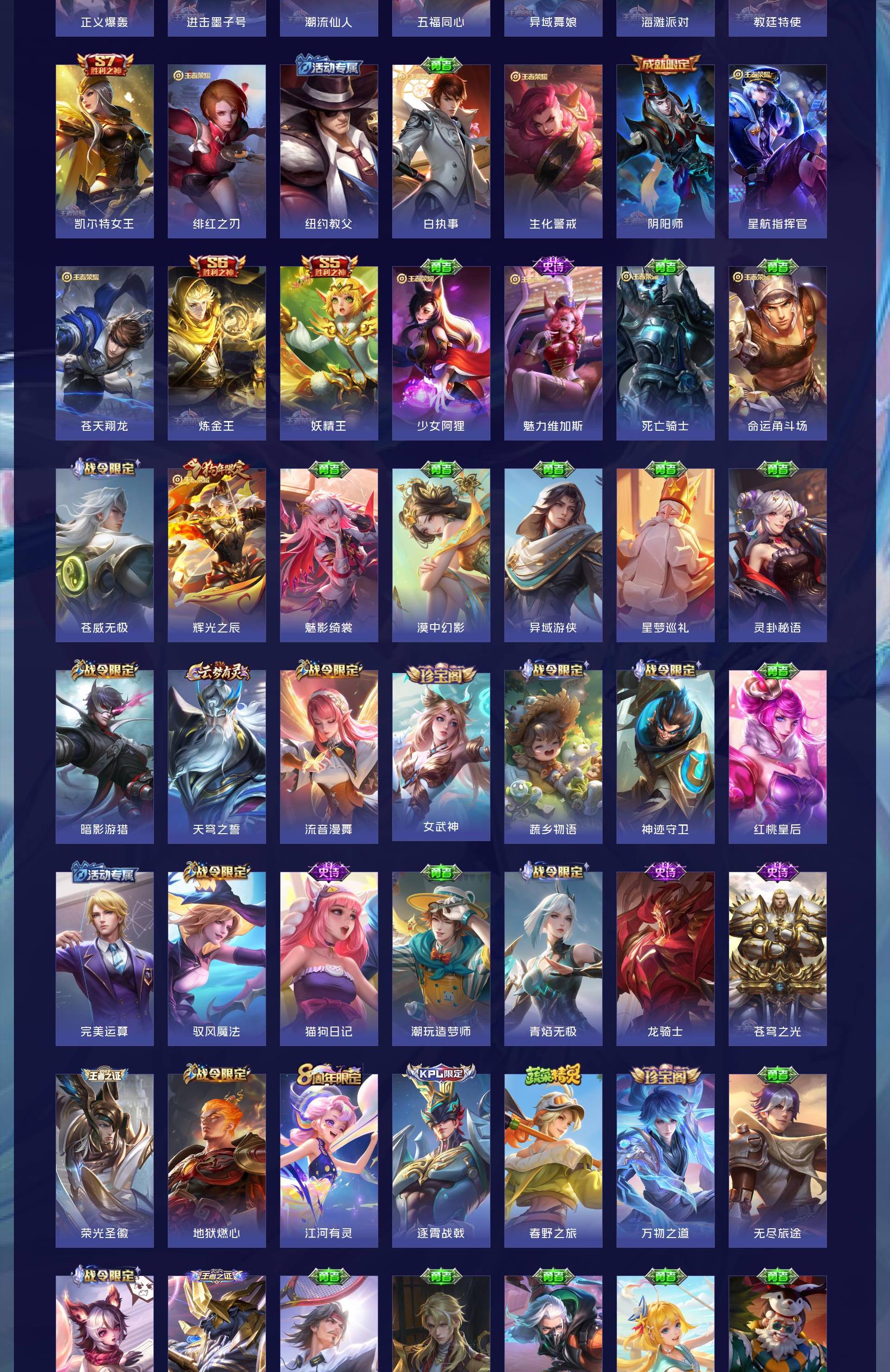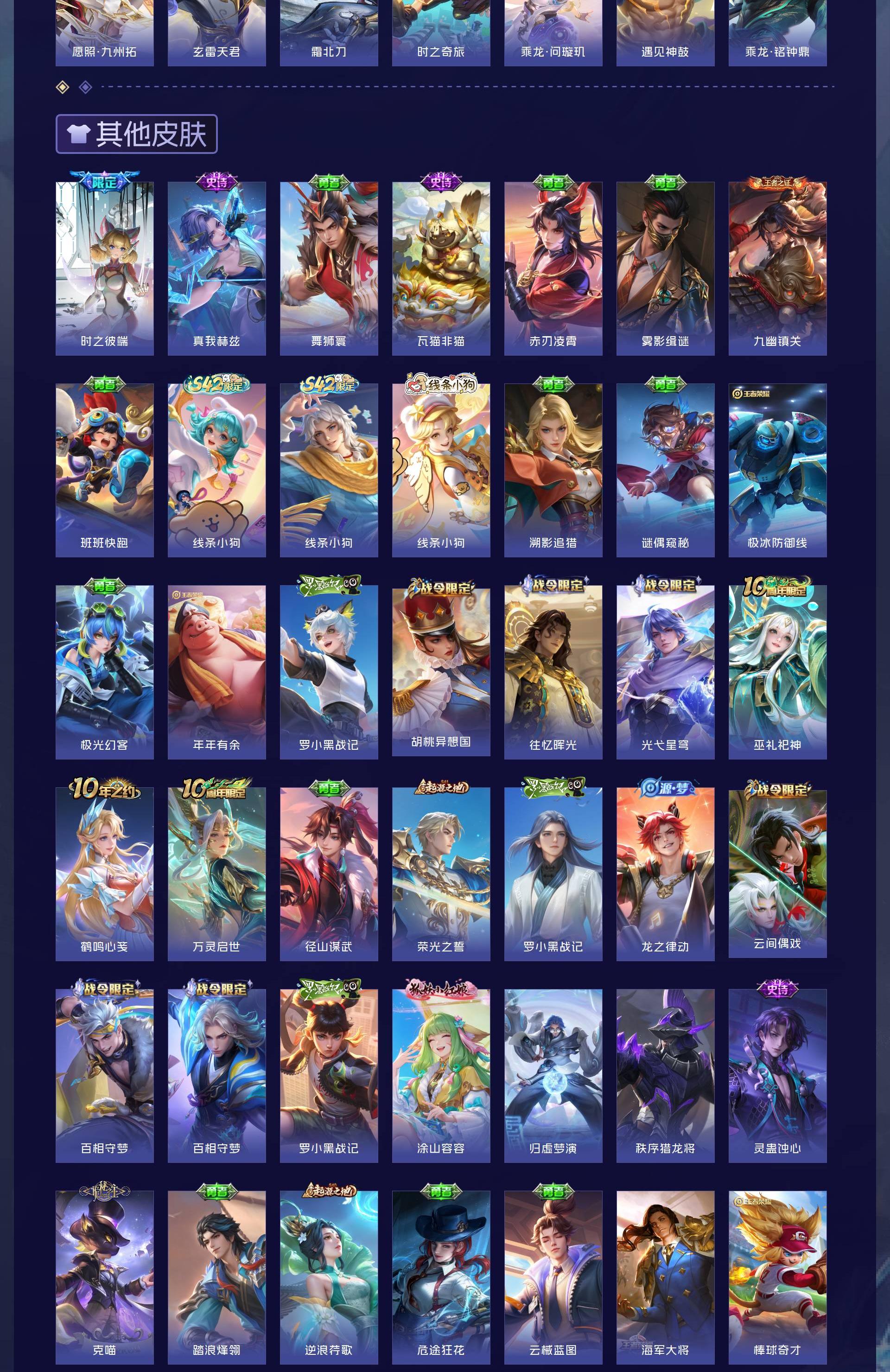 V10 皮肤522 英雄129 荣耀王者 荣耀典藏4 无双皮肤2 珍品传说4 传说57 其他皮肤461