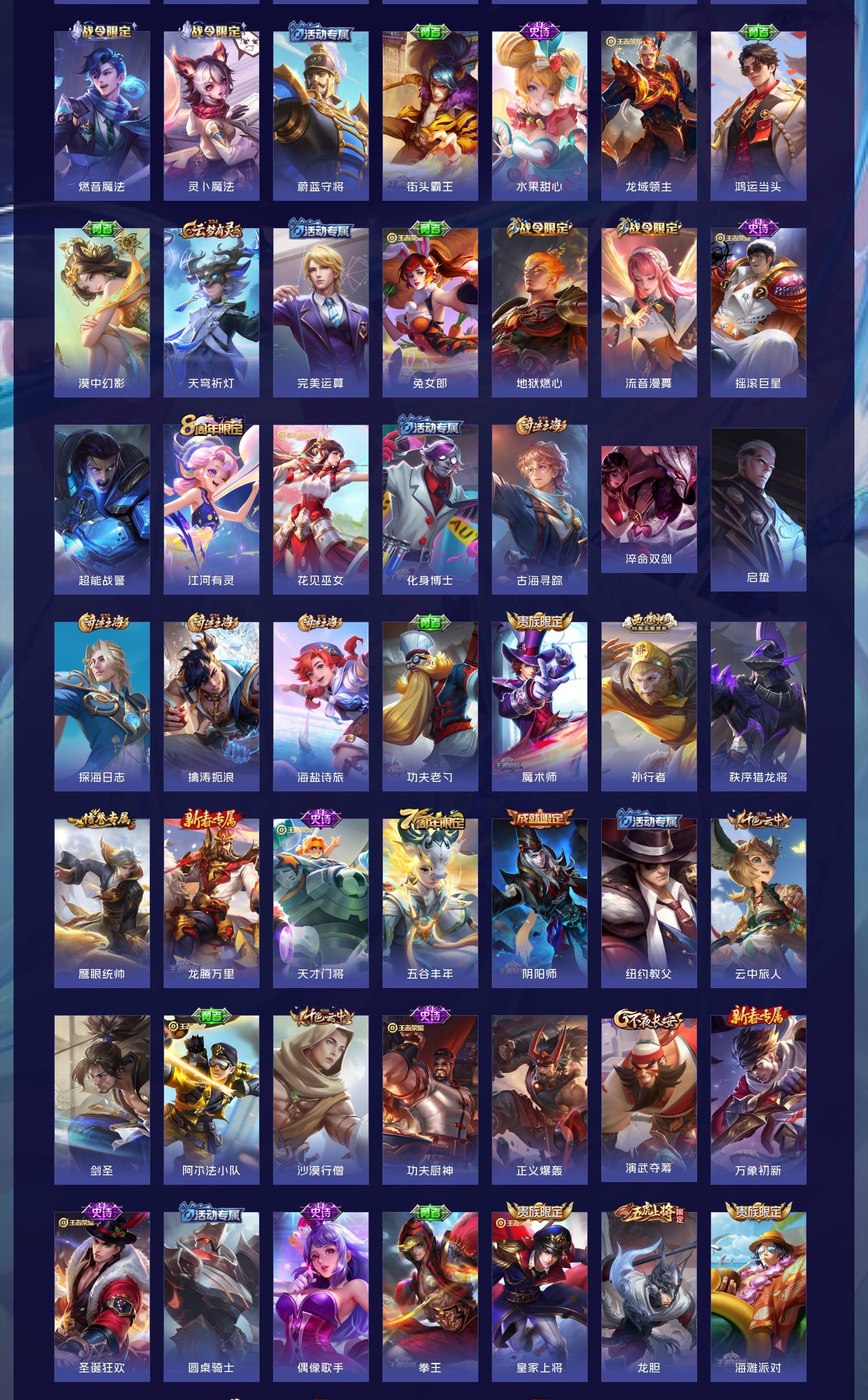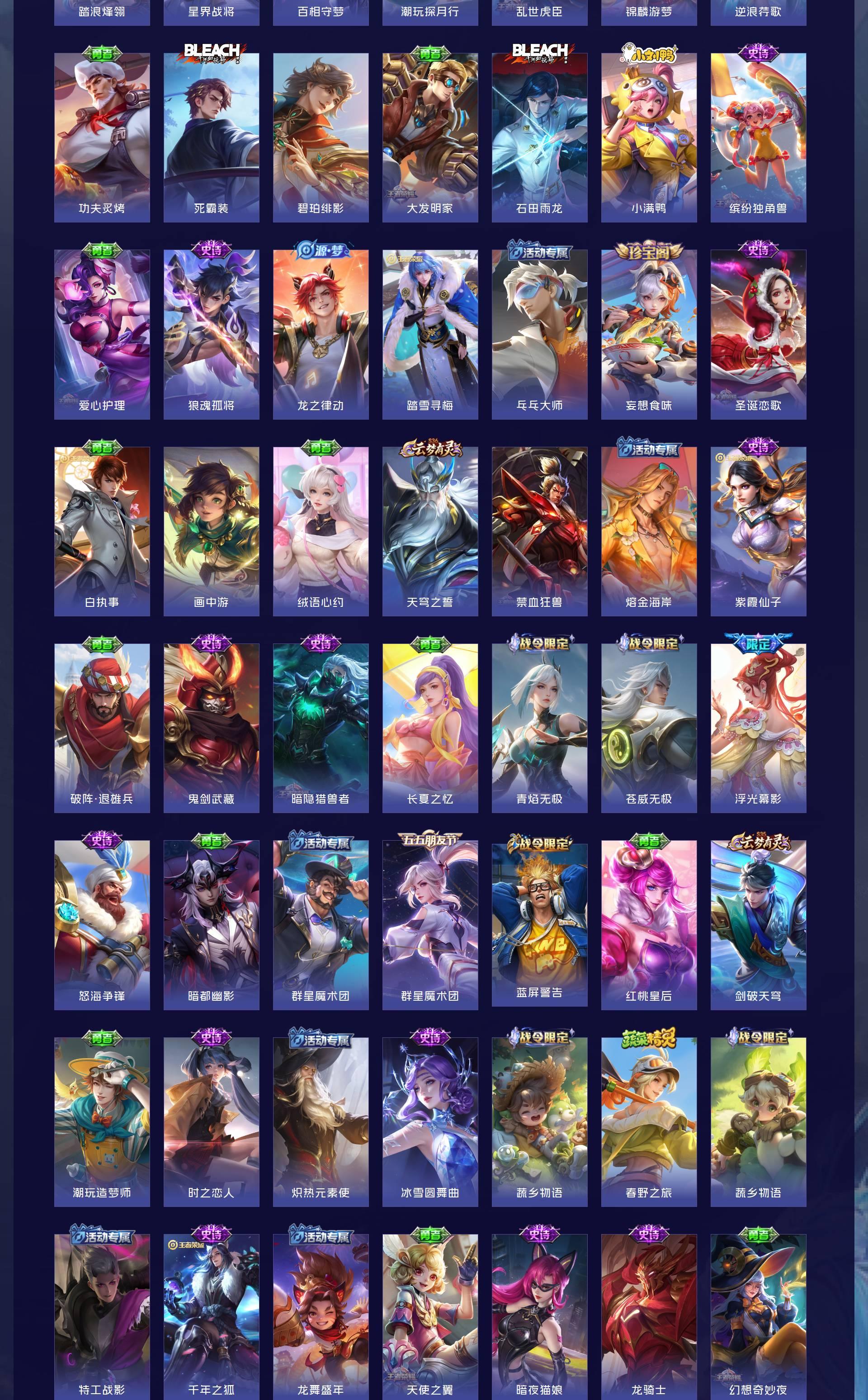 V7 皮肤185 英雄128 至尊星耀 荣耀典藏1 无双皮肤1 珍品传说1 传说16 其他皮肤172