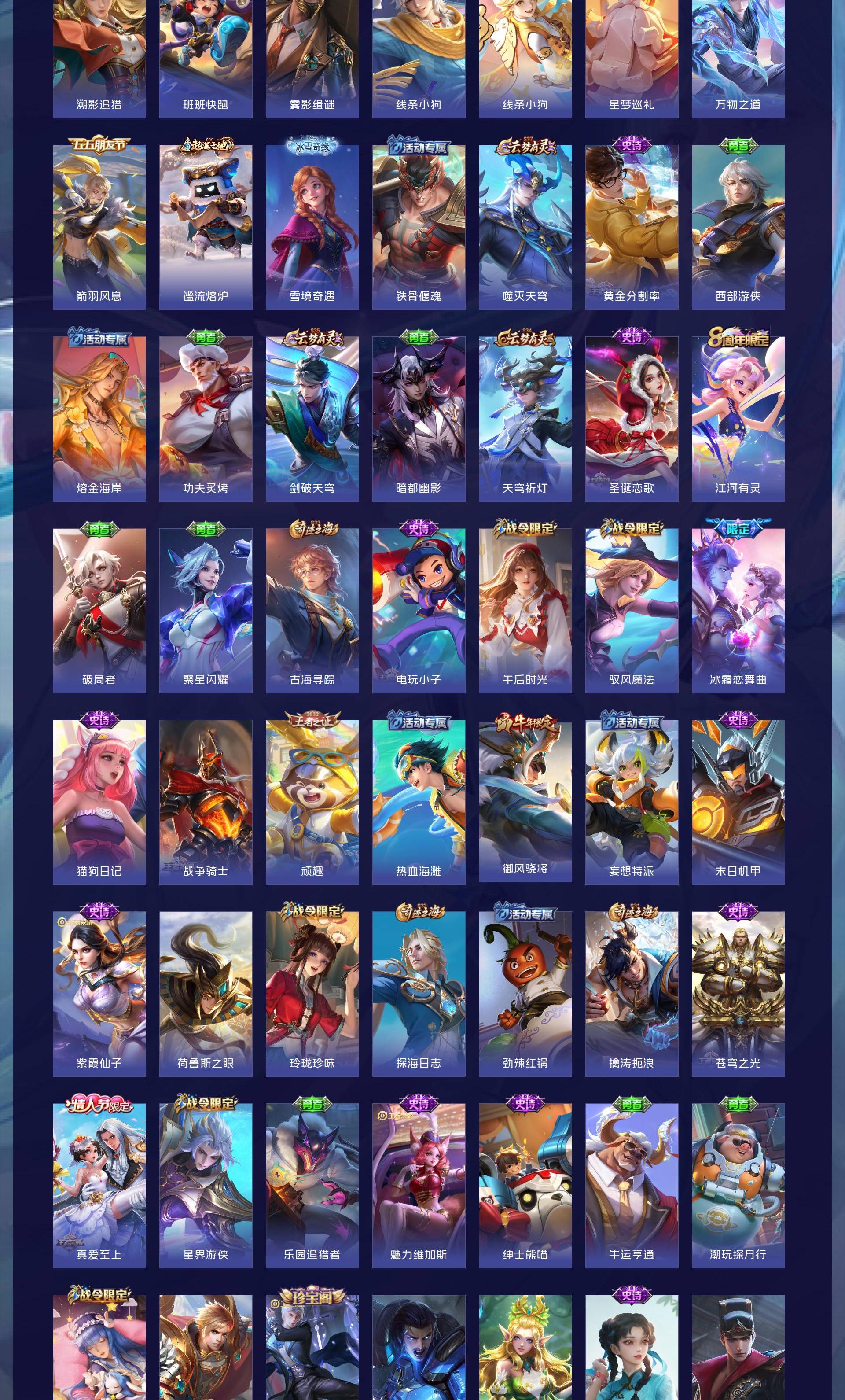 V8 皮肤308 英雄126 永恒钻石 荣耀典藏2 无双皮肤1 传说12 其他皮肤300